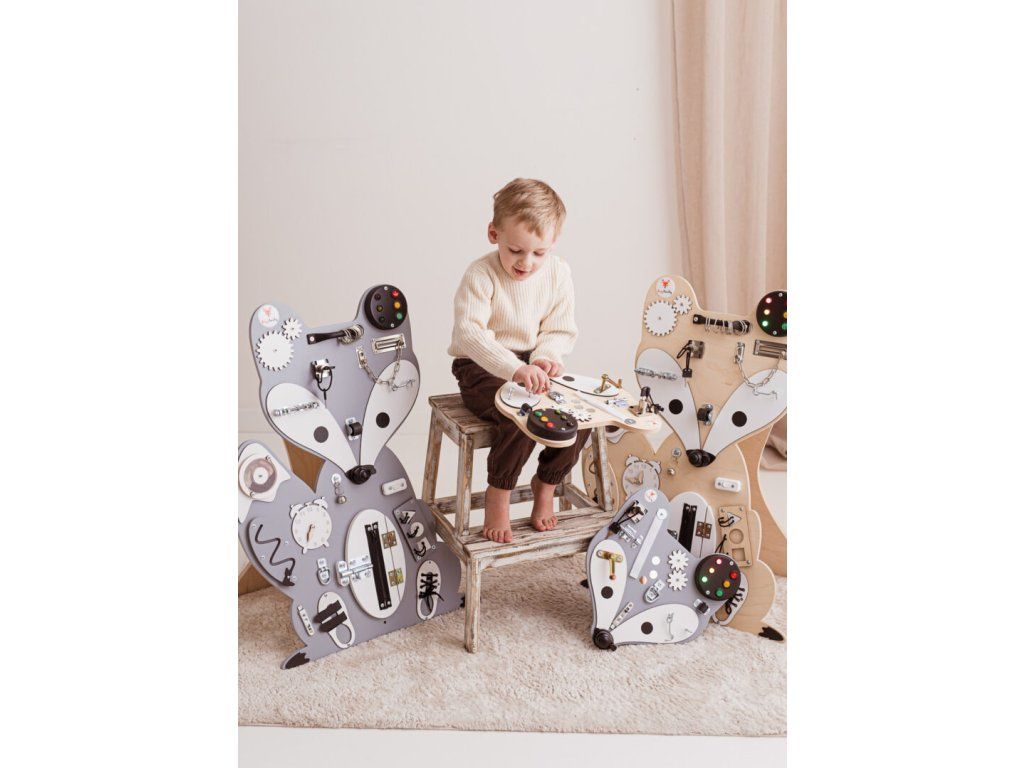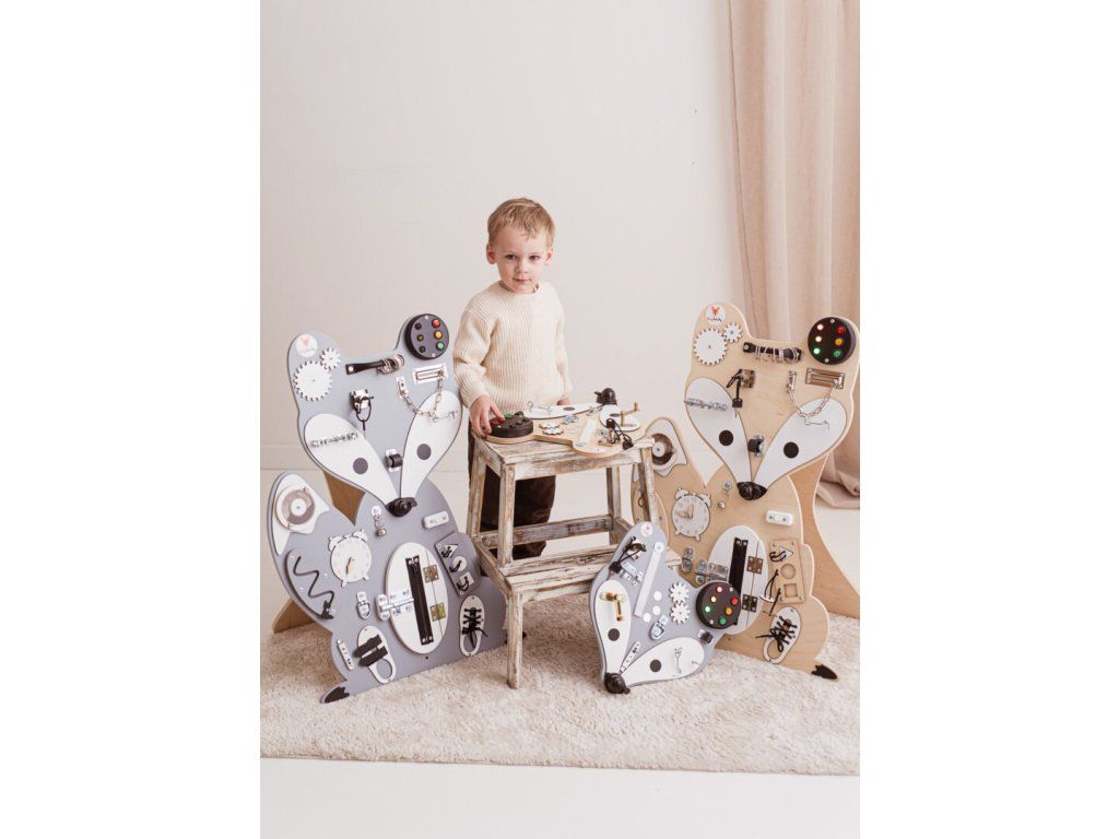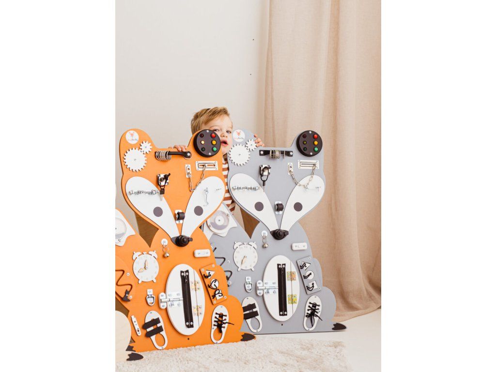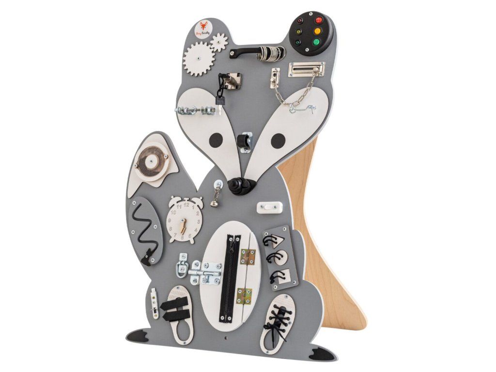 Senzomotorická deska Lišák Leon vás zavede do báječného světa lesních zvířátek! Leon je estetický minimalista. Je výjimečně skladná a odolná vůči dětskému dovádění. Ovládání této desky vyžaduje zručnost a trpělivost, kterou děti budou hravou formou procvičovat.