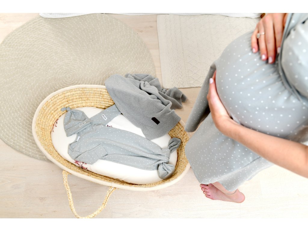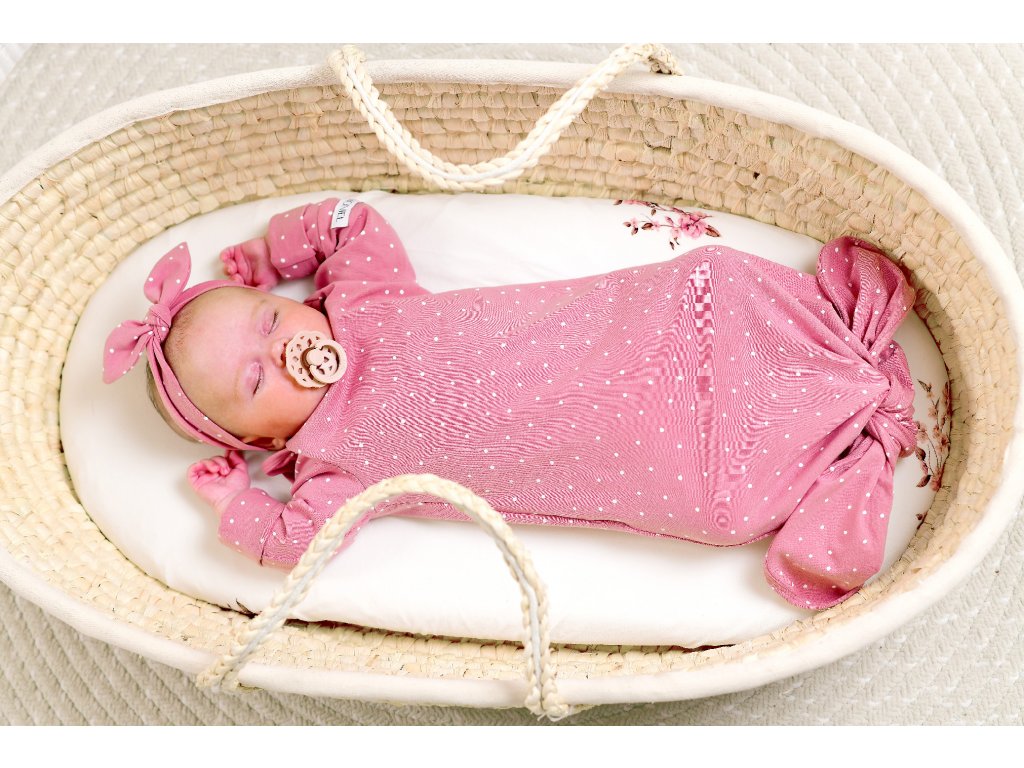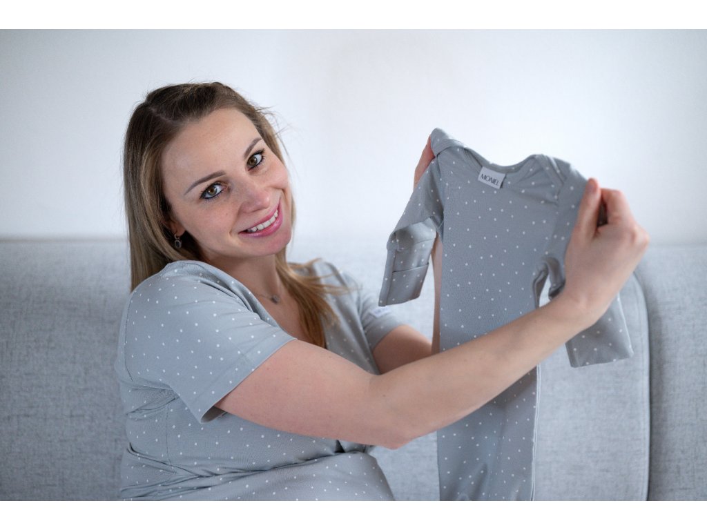 Novorozenecké rostoucí body s uzlem Dots šedá od české značky Moniel je vhodné pro miminka od narození do 3-4 měsíců.