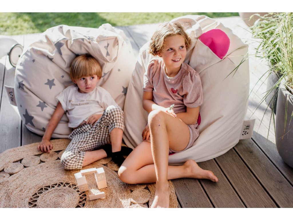 Dětské sedací vaky BiNi jsou pohodlné a děti na nich mohou relaxovat, číst si knížky a povídat si s kamarády, ale také skákat a dovádět.