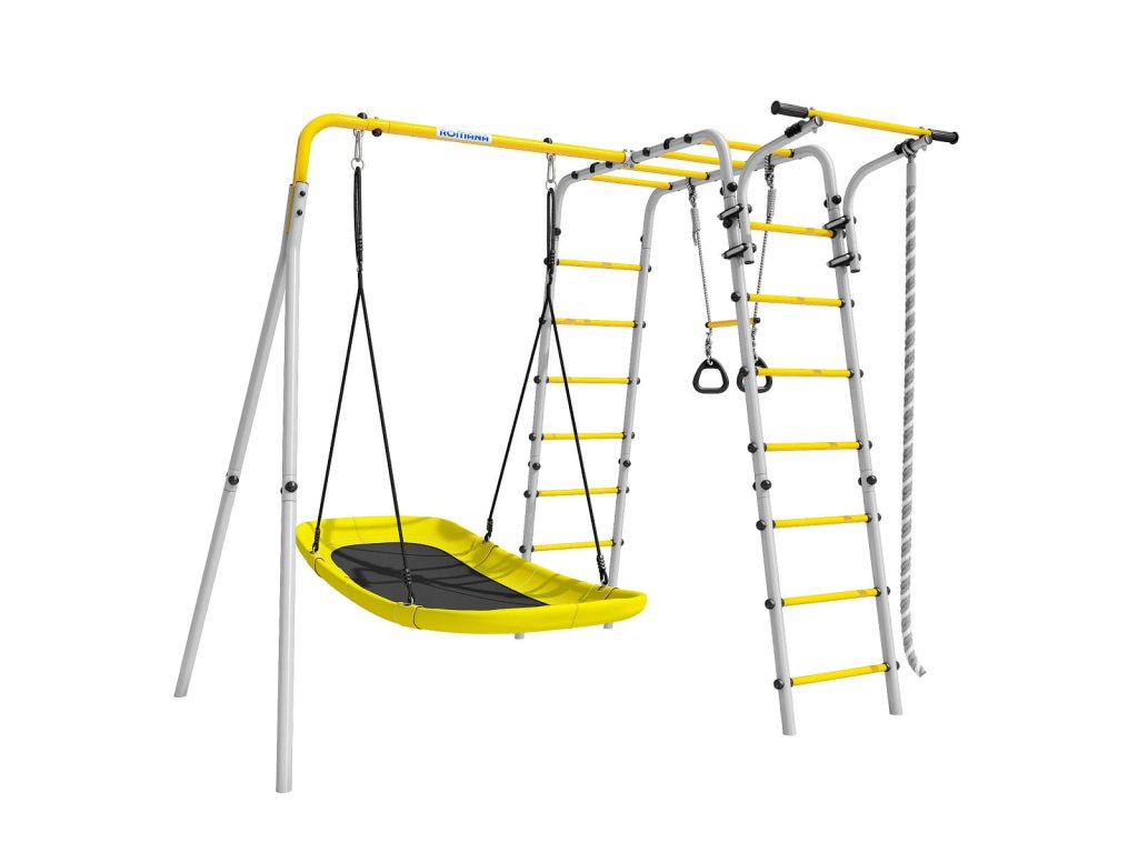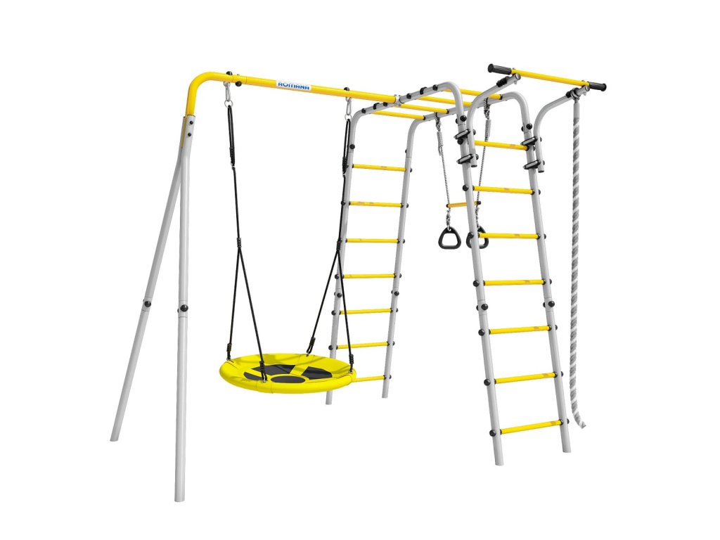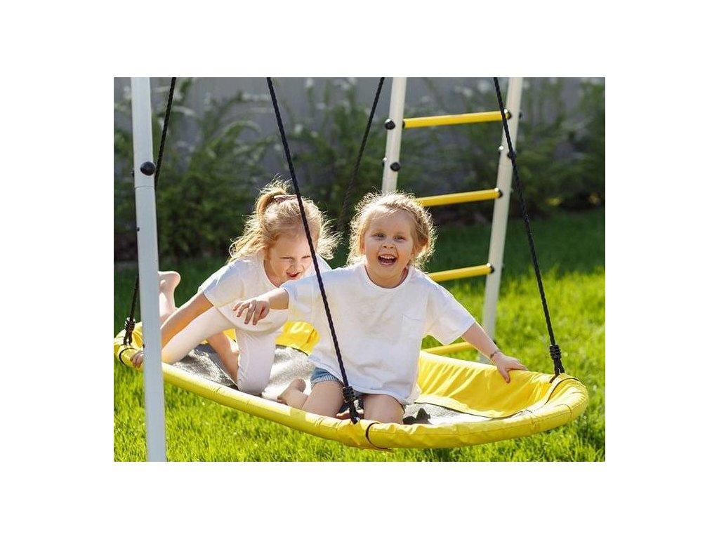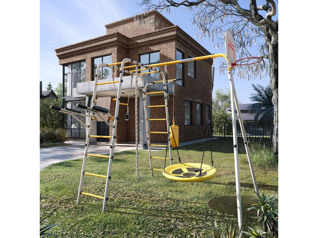 Zahradní dětské hřiště je multifunkční kovová gymnastická sestava pro děti, kterou lze snadno instalovat na domácí zahradě. Tato sestava je vybavena mnoha různými gymnastickými a rekreačními pomůckami, díky nimž se vaše dítě nikdy nebude nudit a zároveň bude pracovat na své fyzické kondici. Hrazda na cvičení, vodorovný žebřík, gymnastické lano – s jejich pomocí se hřiště promění v ideální místo nejen pro hraní, ale i pro cvičení. Dítě si hrou procvičí svaly paží, nohou nebo zad. Díky promyšlenému designu a vybavení bude toto dětské hřiště na zahradě oblíbeným místem vašich dětí po mnoho let. Pevná a odolná kovová konstrukce je zárukou bezpečnosti a dlouhé životnosti tohoto hřiště.