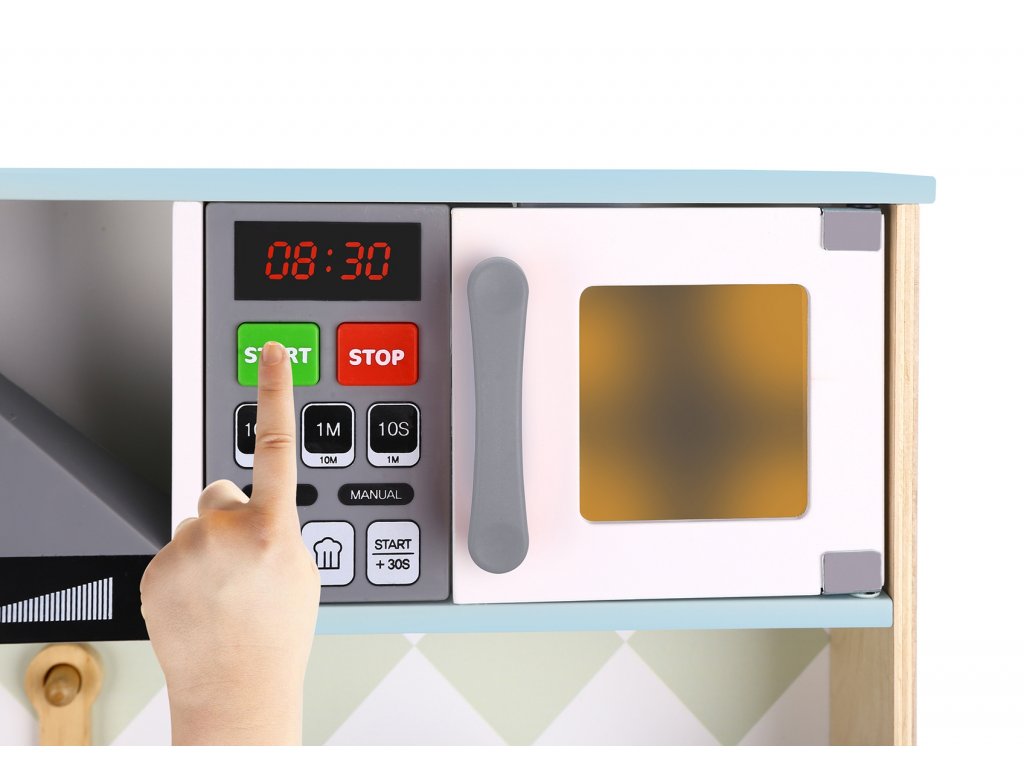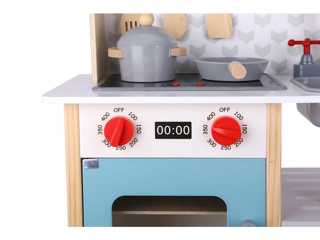 Kuchyňka je vyrobena ze dřeva a je natřena netoxickými barvami.