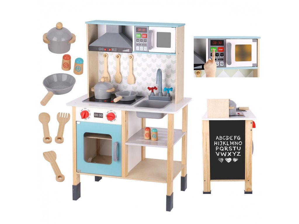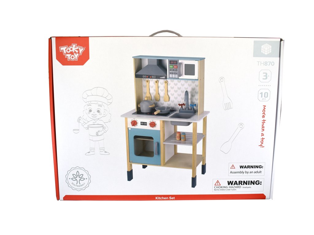 Krásná Kuchyňka s doplňky od značky TOOKY TOY je skvělou nabídkou pro děti, které rády hrají různé role dospělých, které pozorují v každodenním životě. Sada obsahuje mnoho funkčních ploch, jako je dřez, sporák, skříňky a mnoho dalších. Na levé straně je tabule, na kterou mohou děti psát. Můžete simulovat vaření na sporáku a získat tak úžasný kulinářský zážitek. Naučíte-li se používat kuchyňské nářadí a přitom se bavíte, lze v dětech dokonale stimulovat kreativní myšlení a představivost.