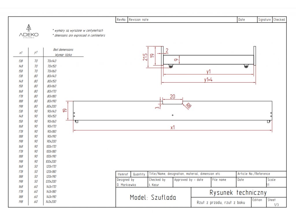 Postele nabízíme v různých rozměrech s délkou od 140 do 200 cm. Kompletní rozměry jednotlivých variant naleznete v produktových fotografiích. Můžete si vybrat i z možnosti dokoupit šuplík pod postel a také prodloužit nohy postele.