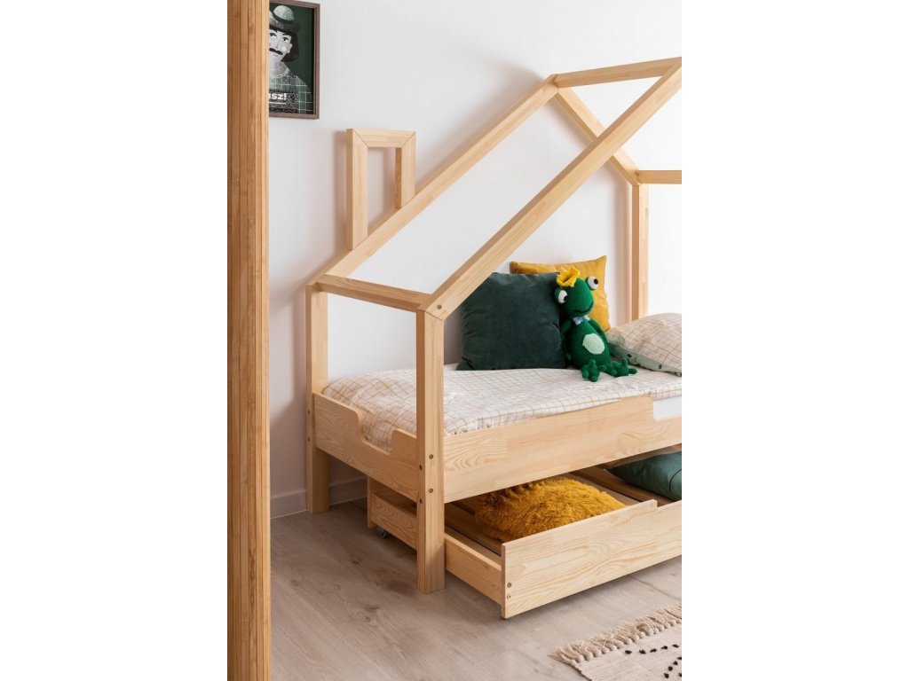Domečková dětská postel s komínem z masivního dřeva se stane absolutní hvězdou každého dětského pokoje. Ve dne si v ní vaše dítko najde čas na hraní, stavění bunkrů, zámků pro princezny a nedobytných pevností. V noci bude klidným a bezpečným útočištěm pro ty nejkrásnější sny vašeho andílka.