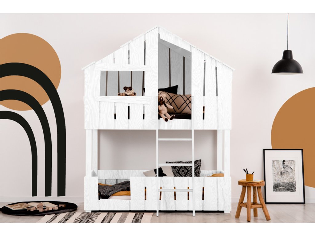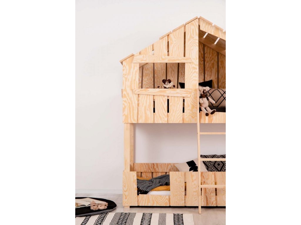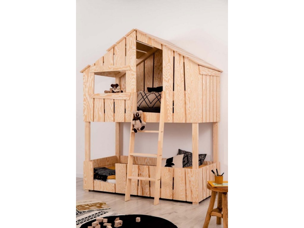 Domečková patrová dětská postel z masivního dřeva se stane absolutní hvězdou dětského pokoje vašich dětí. Ve dne ji využijí pro hraní, stavění bunkrů, zámků pro princezny a nedobytných pevností. V noci bude klidným a bezpečným útočištěm pro ty nejkrásnější sny vašich andílků.