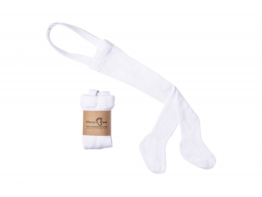 Punčocháče pro miminka a batolata s kšandami v bílé barvě od oblíbené značky Mama's Feet mají oblíbený klasický design. Kvalitní materiál, ze kterého jsou punčocháče vyrobeny, je tvárný a pružný, a díky tomu se ideálně přizpůsobí délce i šířce nohy.