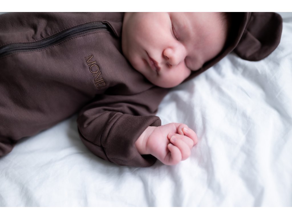 Rostoucí dětský teplákový overal na zip Moniel Medvěd Basic Chocolate je inovativní a jedinečný produkt svého druhu. Overal se dokonale přizpůsobí vašemu děťátku po celý rok.