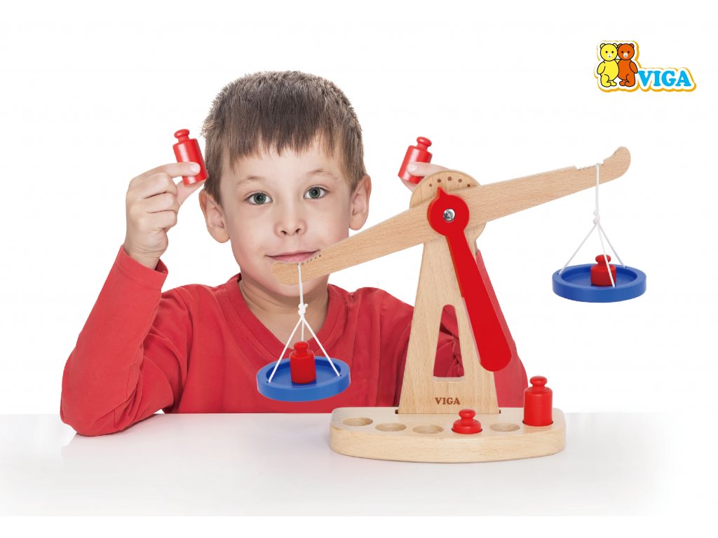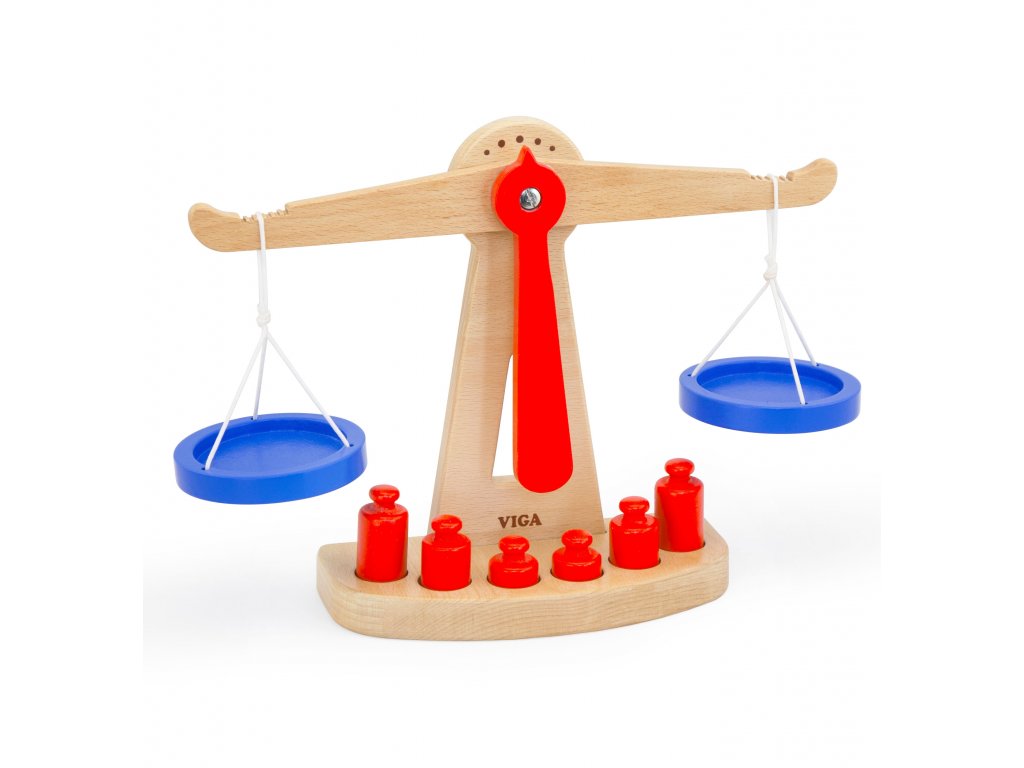 Dřevěná obchodnická váha, pro děti od 3 let od respektovaného výrobce hraček Viga Toys se skvěle hodí do školky i domů. Taková váha na prodejnu je důležitým prvkem, který vám pomůže vážit ovoce a zeleninu. Barevná stupnice rozvíjí představivost a fantazii a pomůže vám pochopit hodnotu peněz a základy matematiky.