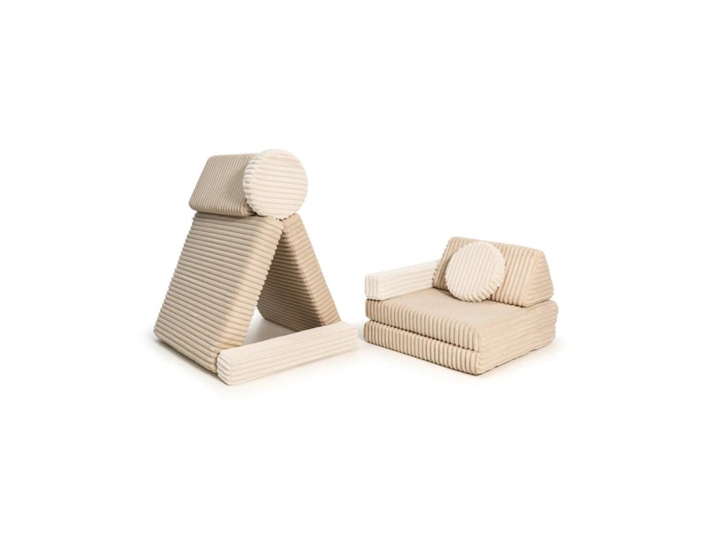 Multifunkční pohovka a bunkr má lehké bloky, dají se tak snadno přemístit. Během chvilky vytvoříte dětem odpočinkovou zónu. Bloky se dají snadno kombinovat, tak je jen na vás a na vašich možnostech ohledně prostoru, jak velkou lenošku nebo lůžko vytvoříte. Velkým bonusem je, že můžete odpočívat spolu s vašimi dětmi, po rozložení pohovky je lůžko téměř stejné velikosti jako manželská postel. Kdo by nevyužil možnosti víkendového odpočinku spolu s dětmi a k tomu v obýváku u pohádky?