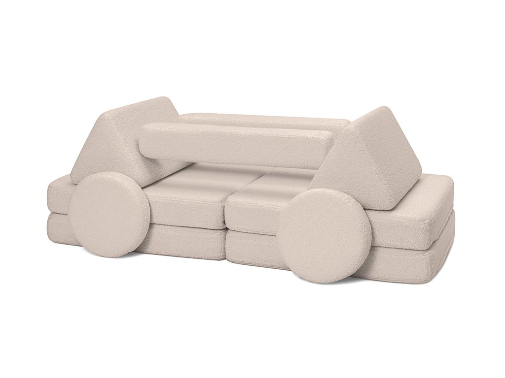 Multifunkční pohovka a bunkr má lehké bloky, dají se tak snadno přemístit. Během chvilky vytvoříte dětem odpočinkovou zónu. Bloky se dají snadno kombinovat, tak je jen na vás a na vašich možnostech ohledně prostoru, jak velkou lenošku nebo lůžko vytvoříte. Velkým bonusem je, že můžete odpočívat spolu s vašimi dětmi, po rozložení pohovky je lůžko téměř stejné velikosti jako manželská postel. Kdo by nevyužil možnosti víkendového odpočinku spolu s dětmi a k tomu v obýváku u pohádky?