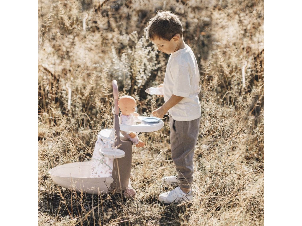 - Druhá část tašky se změní na pohodlnou postýlku pro panenku s baldachýnem a měkkou přikrývkou.