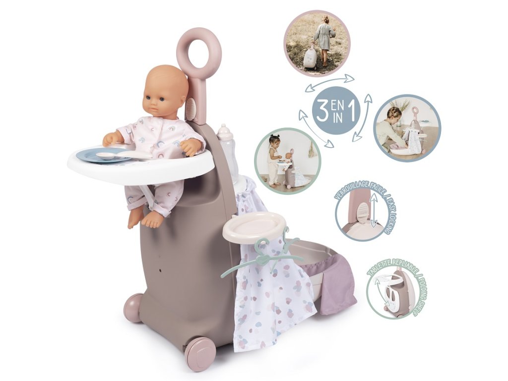 Multifunkční kufřík pro panenky 3v1 je skvělým doplňkem pro všechny děti, kteří si rády hrají s panenkami. Kufřík se dá snadno přeměnit na jídelní židličku, postýlku nebo využít jako cestovní tašku. Hračka je skvělá také pro cestování.