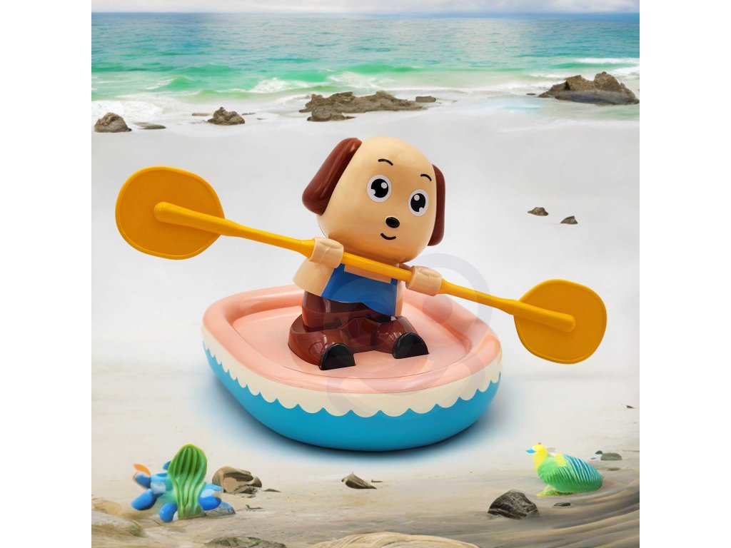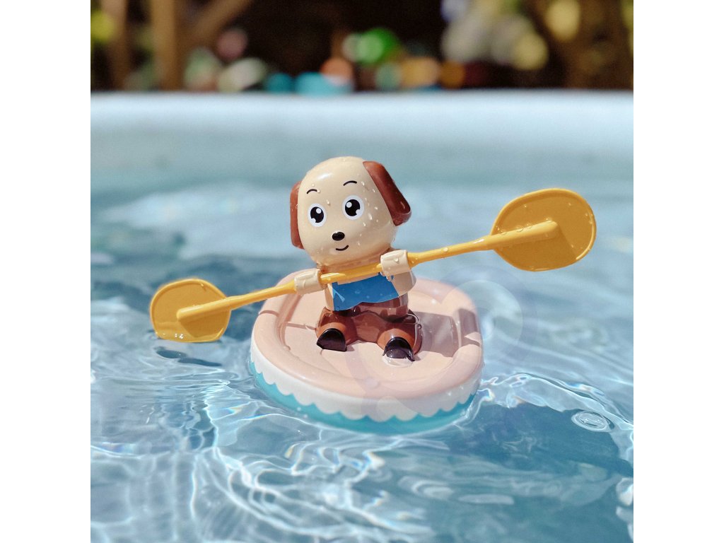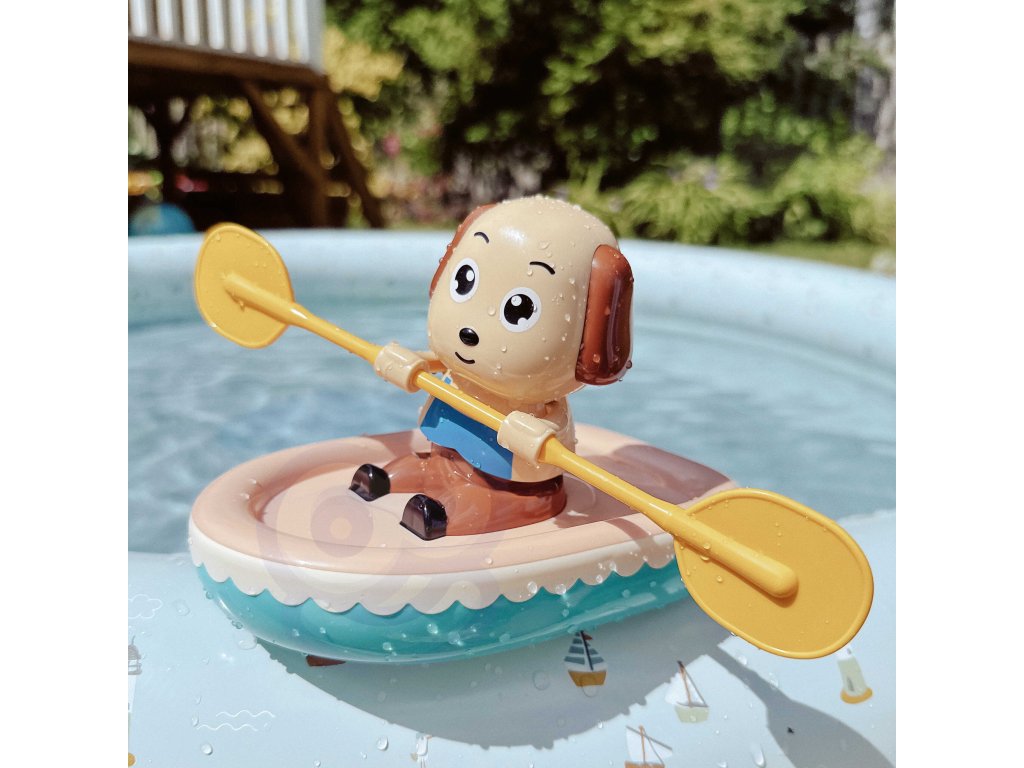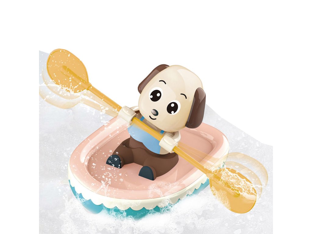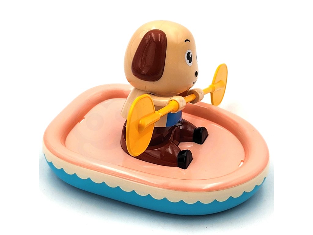 Natahovací veslařský pes je hračka, která povzbudí malé děti ke koupání a zpříjemní jim chvíle ve vaně. Stačí hračku natočit ve směru hodinových ručiček, položit ho na vodu a sledovat, jak vesluje a plave po hladině.