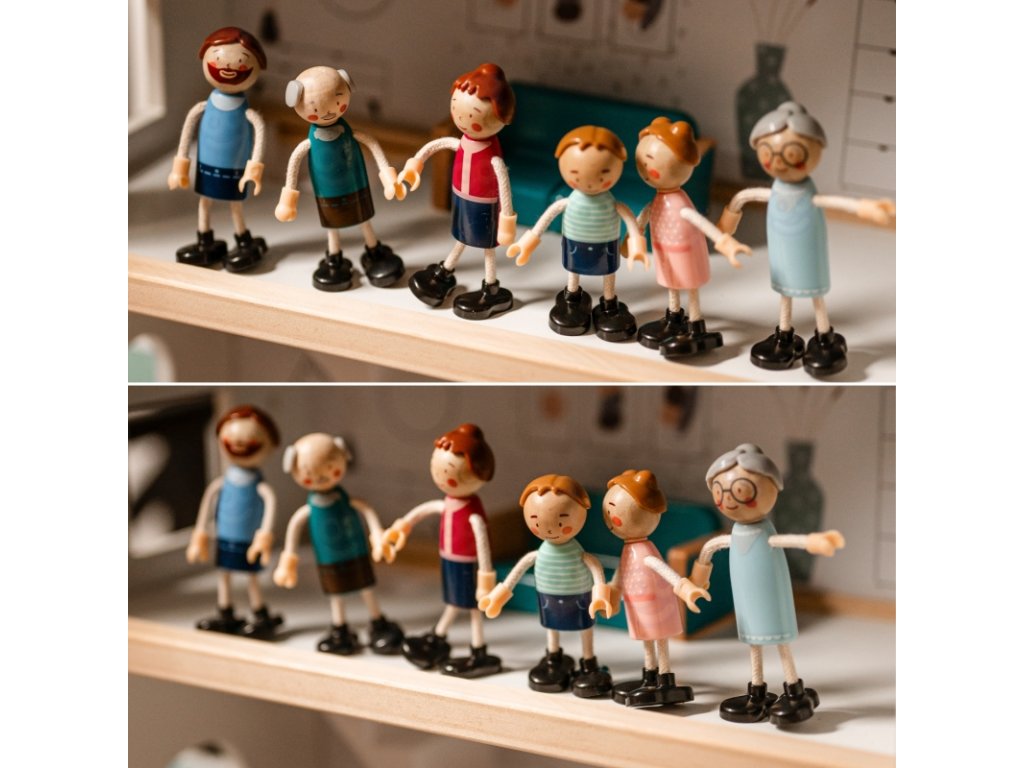 Dřevěný domeček pro panenky s panenkami a příslušenstvím Tooky