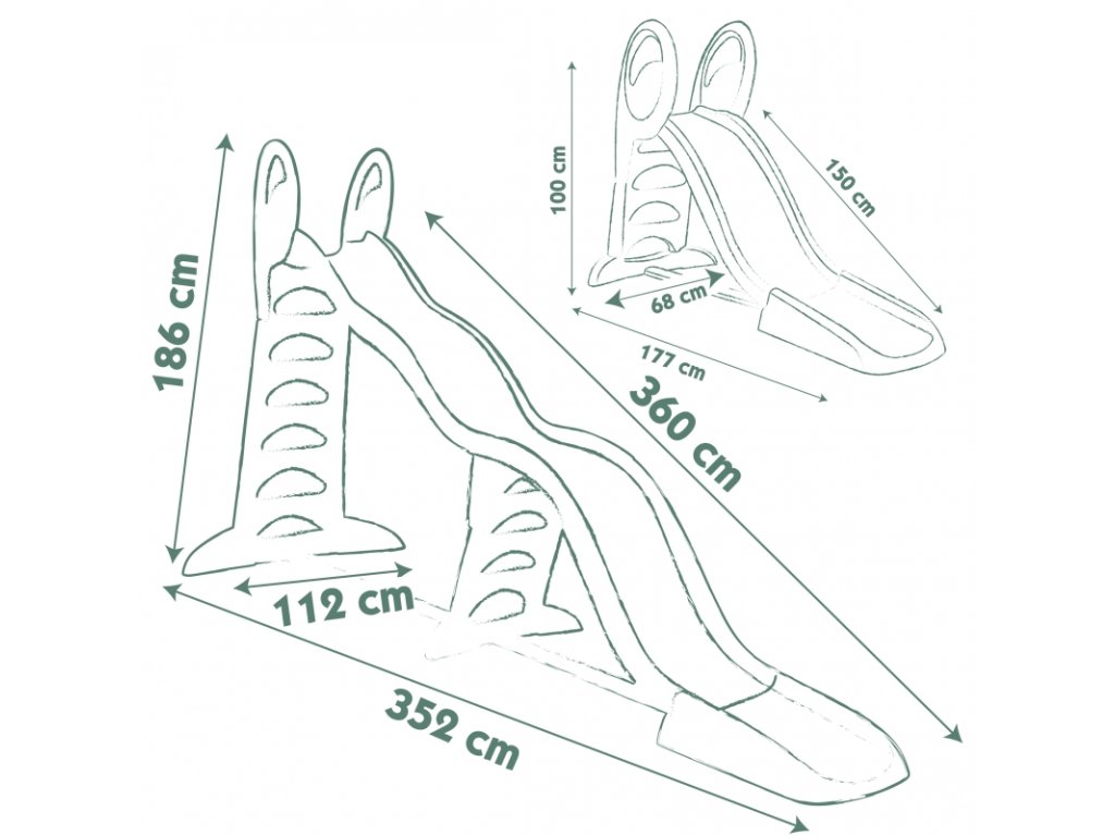 - Modulární konstrukce – délka skluzavky od 150 do 360 cm