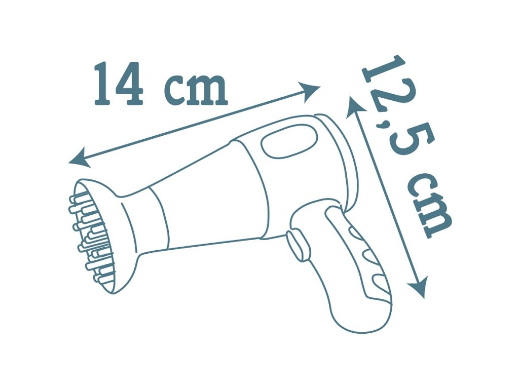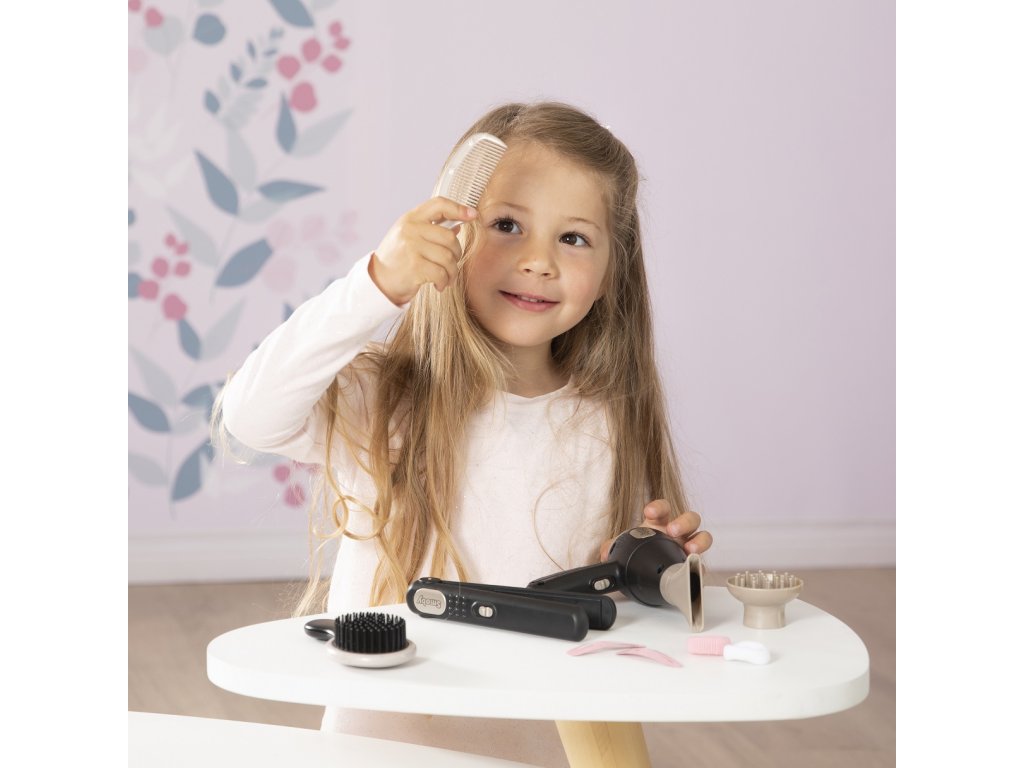 Fén a žehlička jsou hračky a z bezpečnostních důvodů nejsou funkční. Slouží k hraní a rozvíjení fantazie vašeh omalého andílka :-)