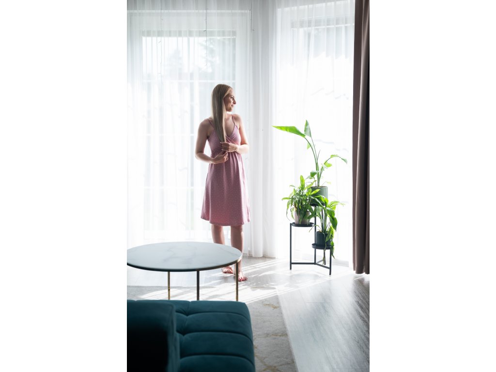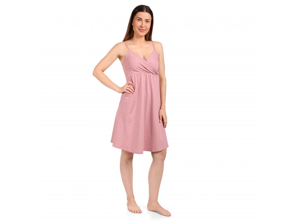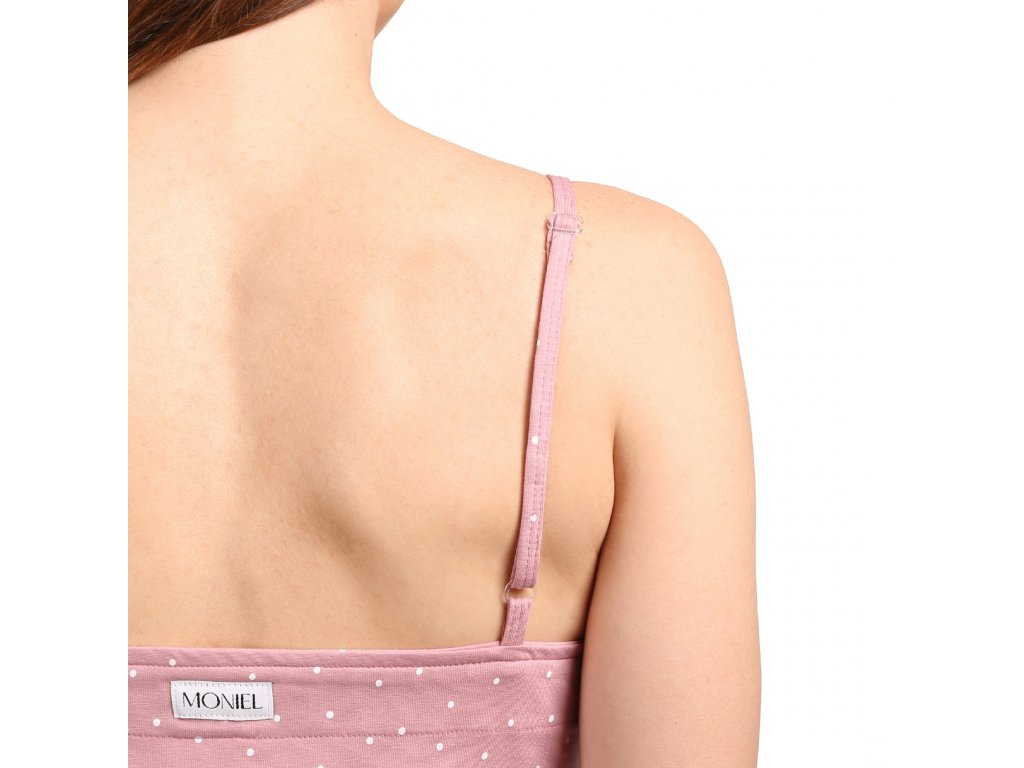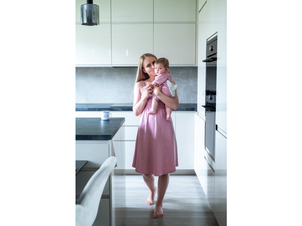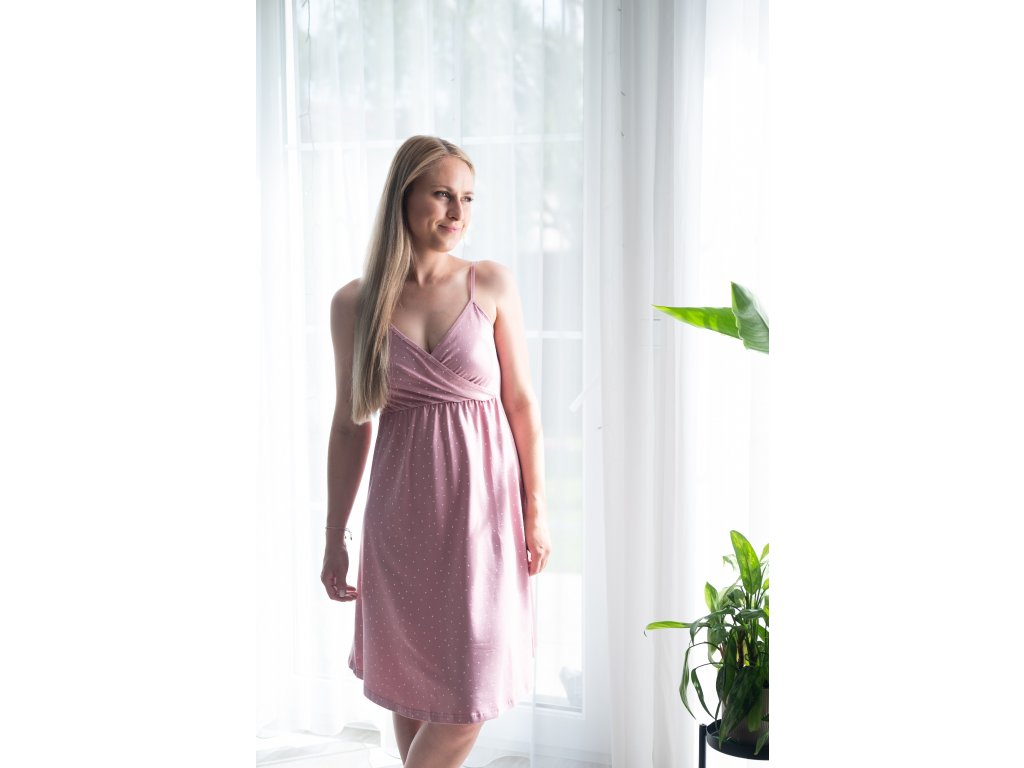 Dámská těhotenská a kojící košilka na ramínka Moniel Dots růžová je noční košilka a pohodlné domácí šaty v jednom! Je to multifunkční kousek oblečení, který vám vydrží po celou dobu těhotenství, kojení a mateřství.