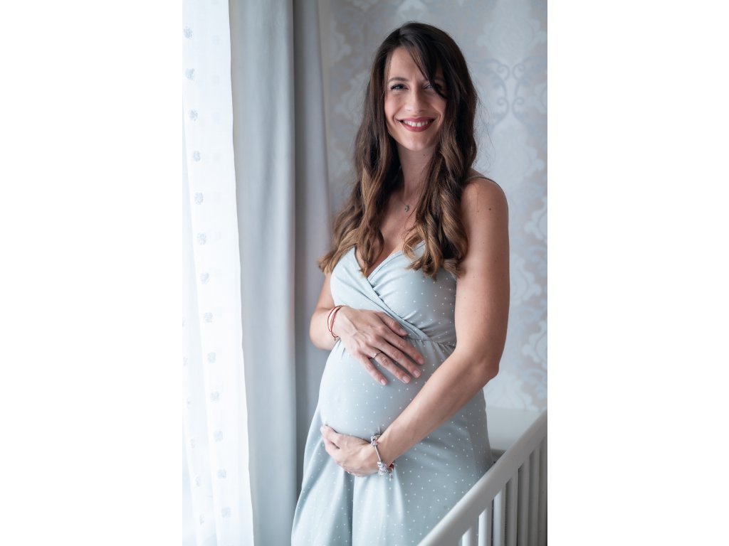 Košilka Moniel má speciální střih vhodný pro těhotenské i normální bříško. Má zavinovací výstrih do V, který umožní rychlé a pohodlné kojení kdykoli bude potřeba. Po kojení dekolt snadno zakryjete bez použití patentků, zipů či dalších pomůcek.