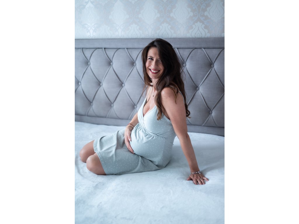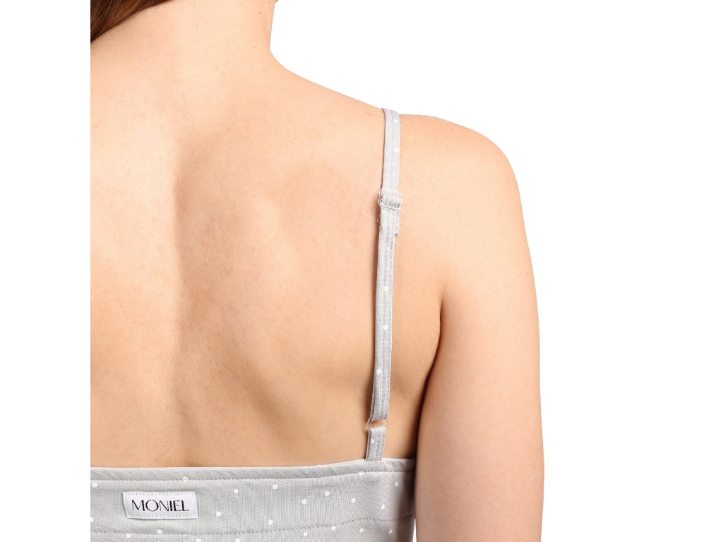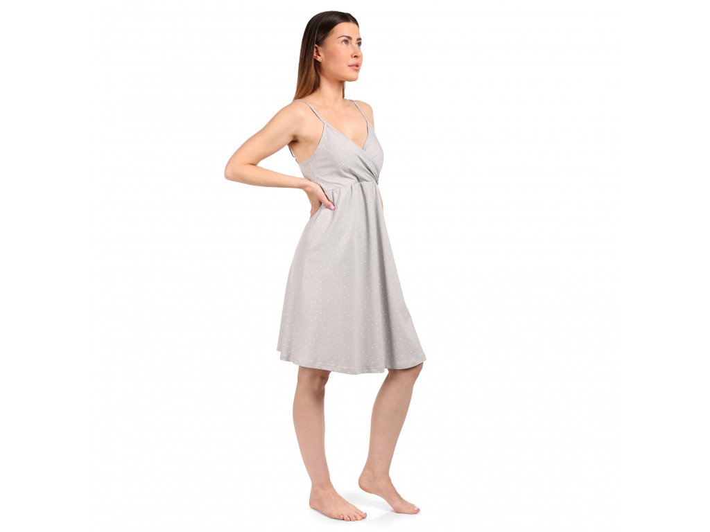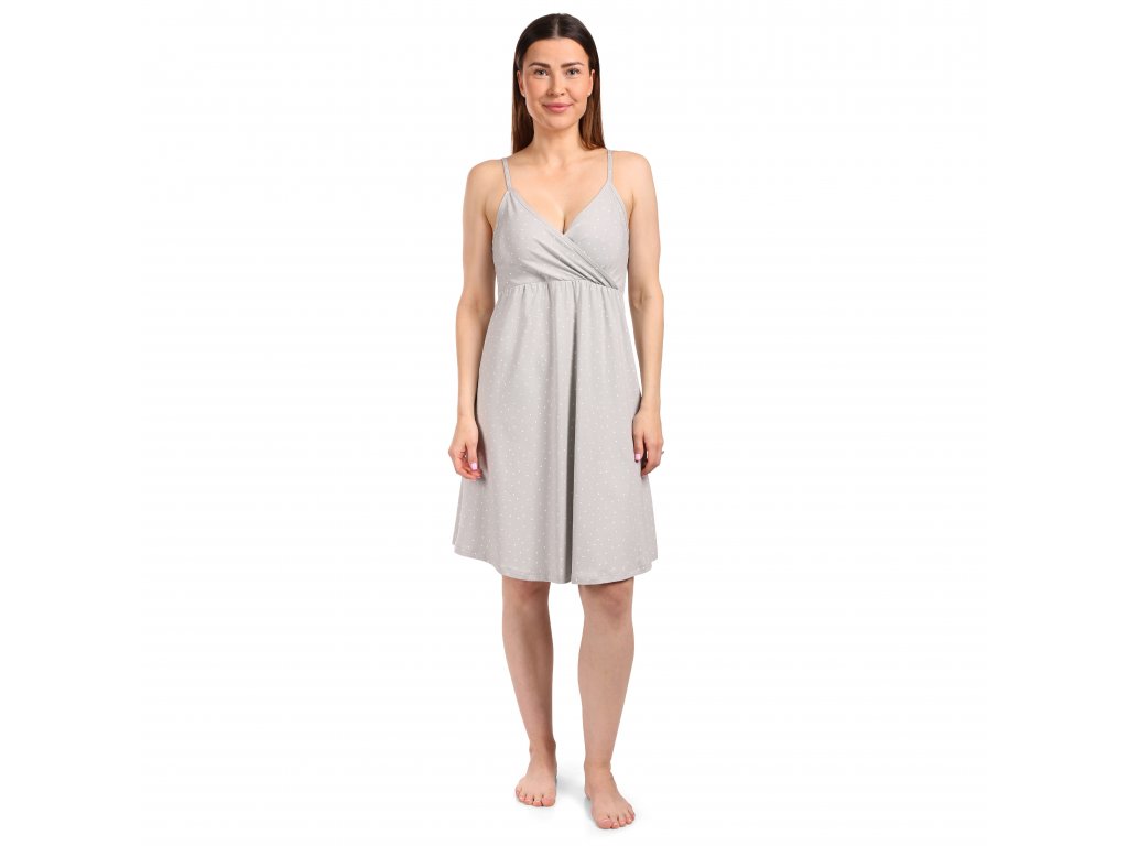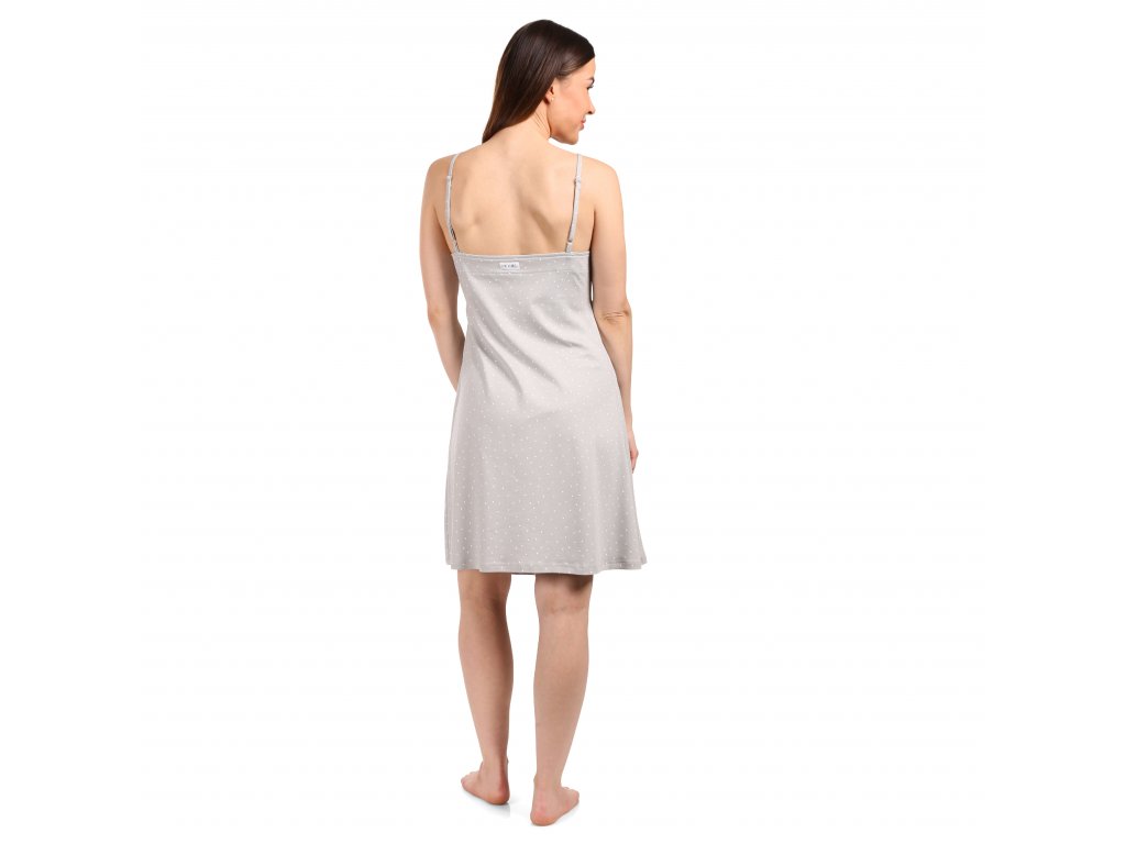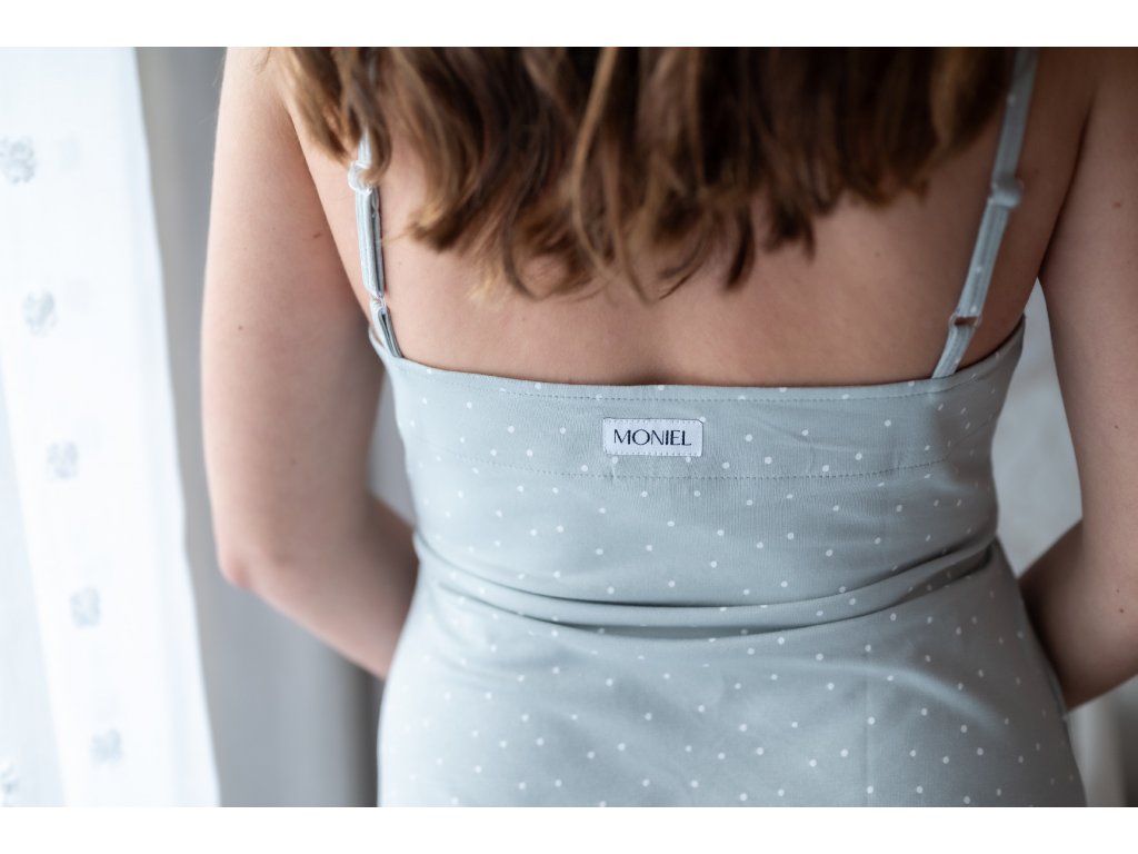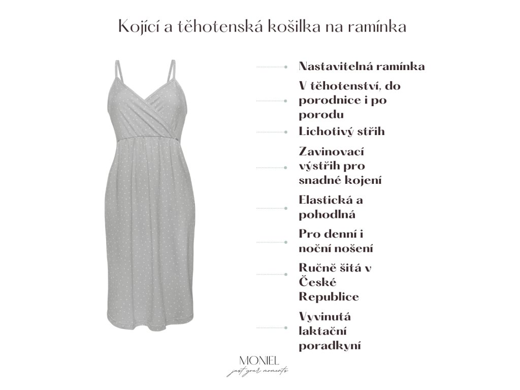 Dámská těhotenská a kojící košilka na ramínka Moniel Dots šedá je noční košilka a pohodlné domácí šaty v jednom! Je to multifunkční kousek oblečení, který vám vydrží po celou dobu těhotenství, kojení a mateřství.