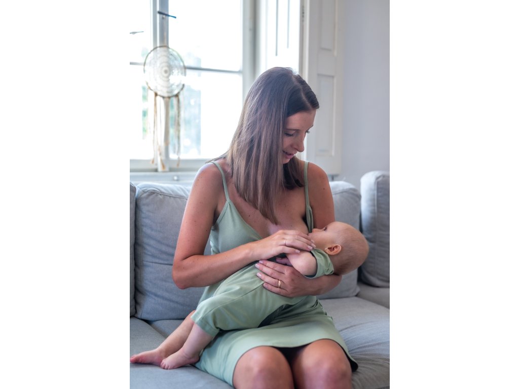 Dámská těhotenská a kojící košilka na ramínka Moniel Olive je noční košilka a pohodlné domácí šaty v jednom! Je to multifunkční kousek oblečení, který vám vydrží po celou dobu těhotenství, kojení a mateřství.