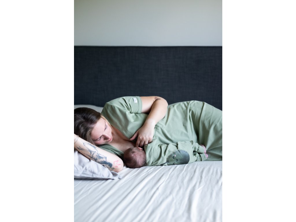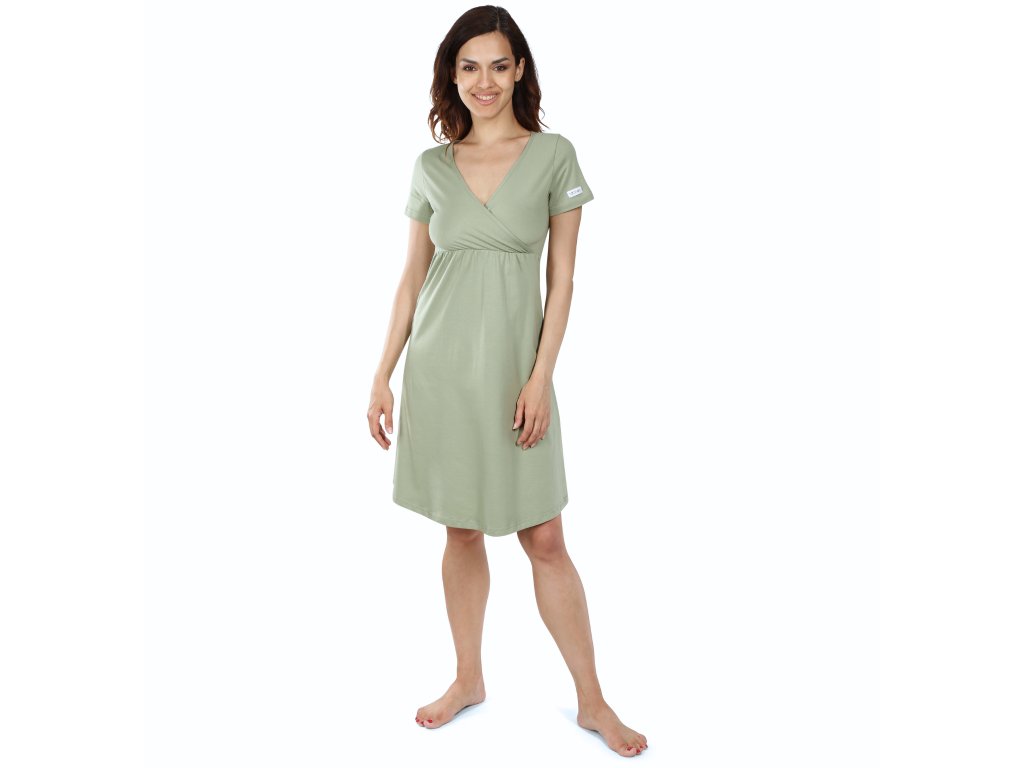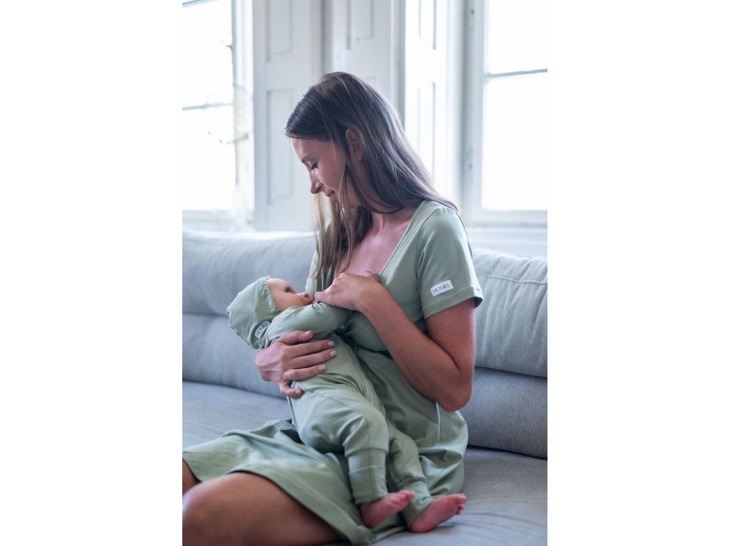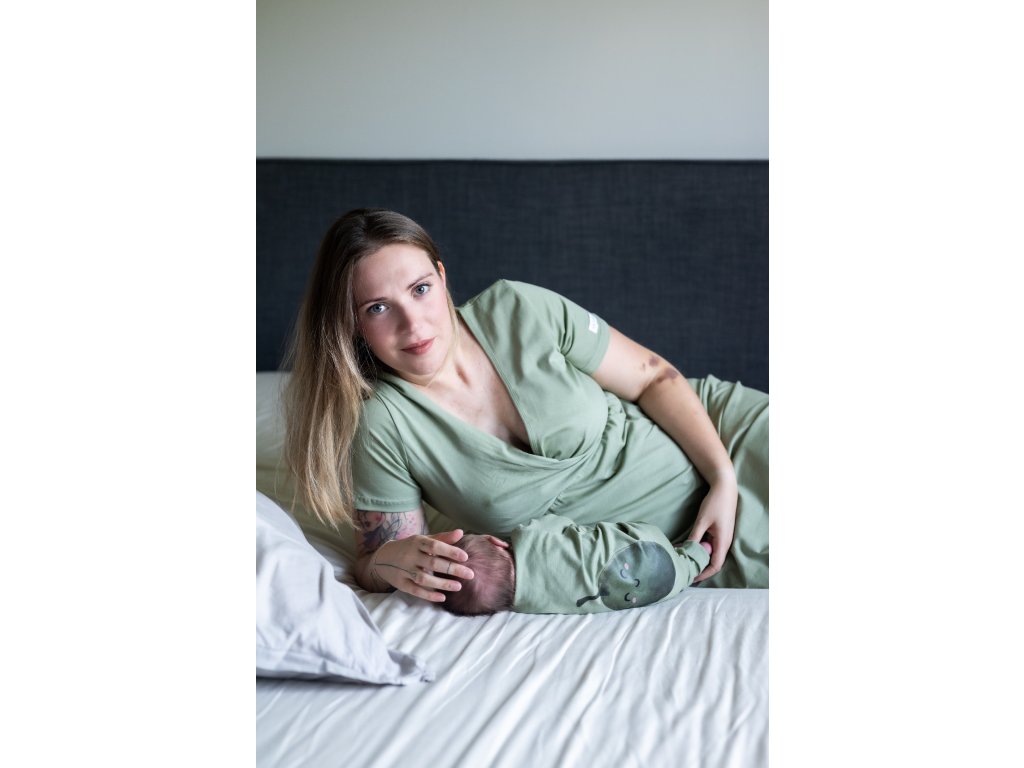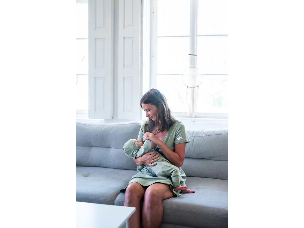 Dámská těhotenská a kojící košilka Moniel Olive je noční košilka a pohodlné domácí šaty v jednom! Je to multifunkční kousek oblečení, který vám vydrží po celou dobu těhotenství, kojení a mateřství.