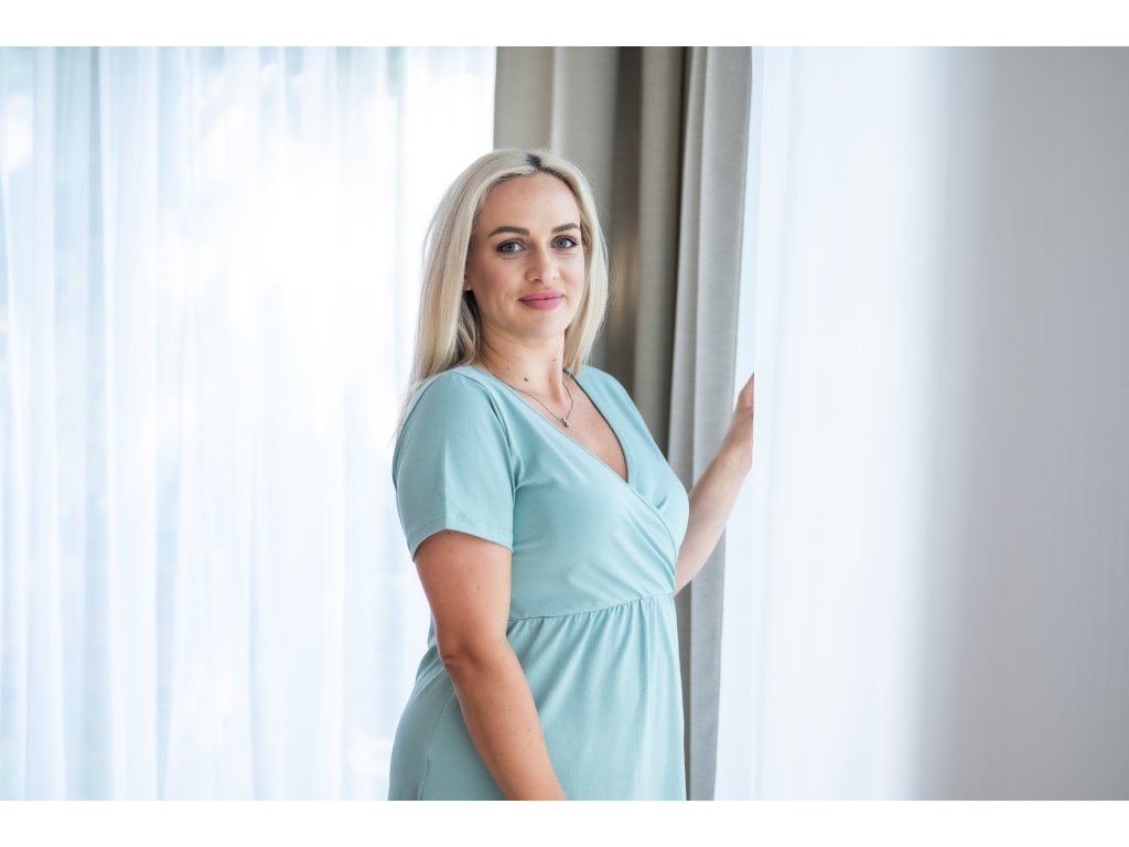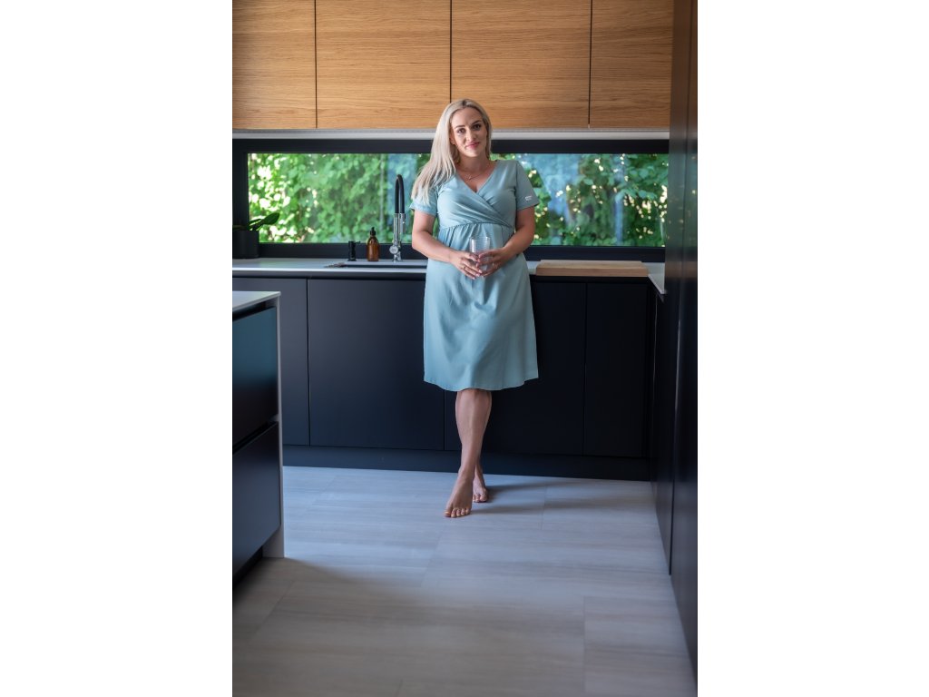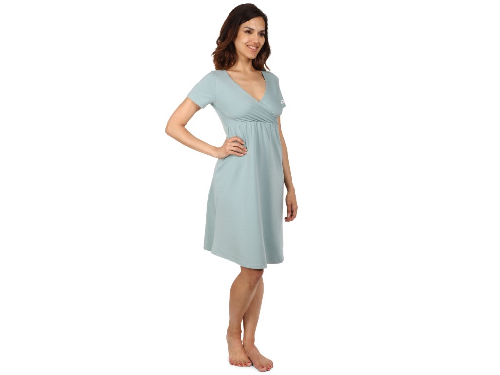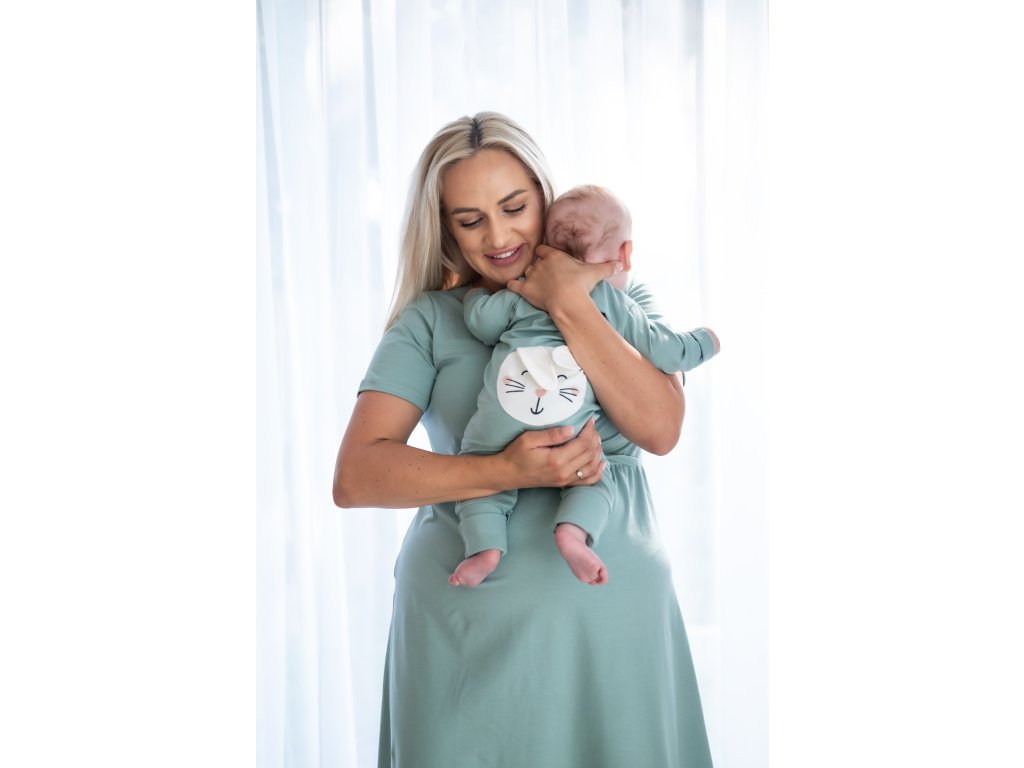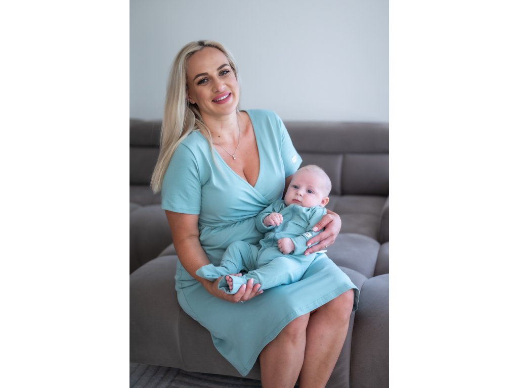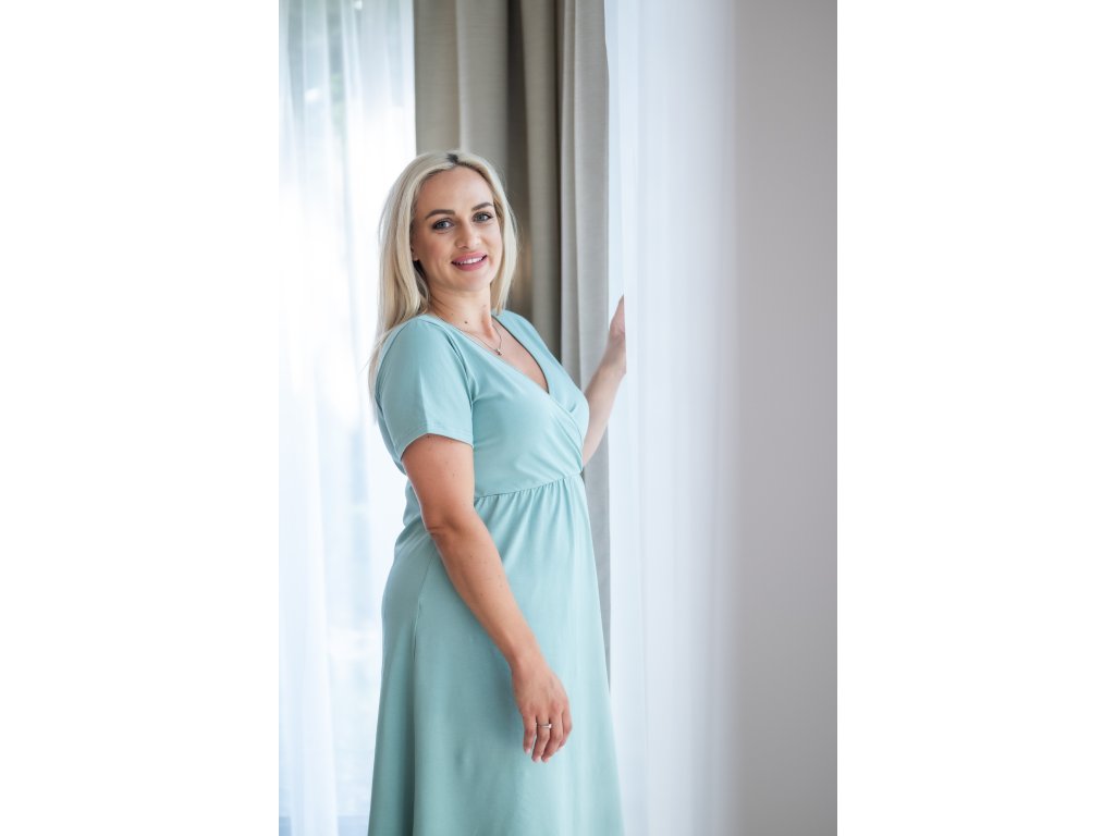 Dámská těhotenská a kojící košilka Moniel Pastel mintová je noční košilka a pohodlné domácí šaty v jednom! Je to multifunkční kousek oblečení, který vám vydrží po celou dobu těhotenství, kojení a mateřství.