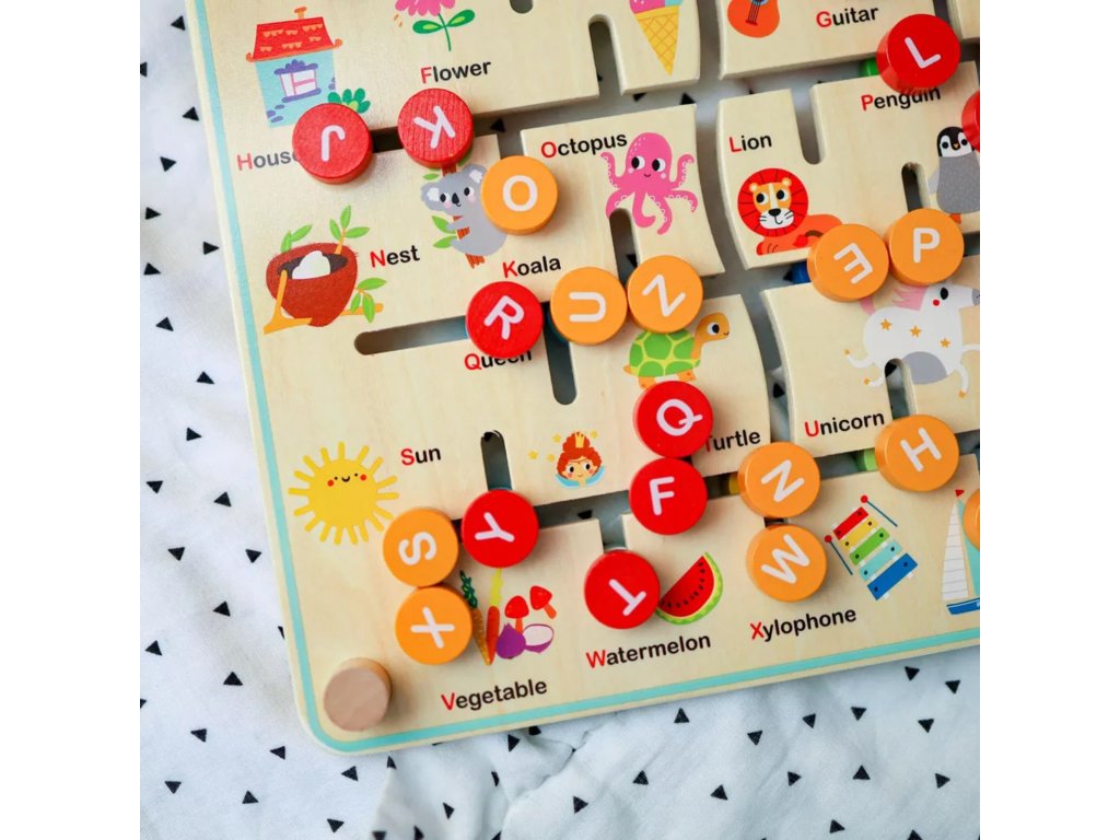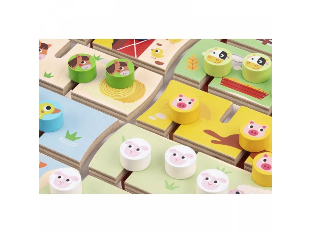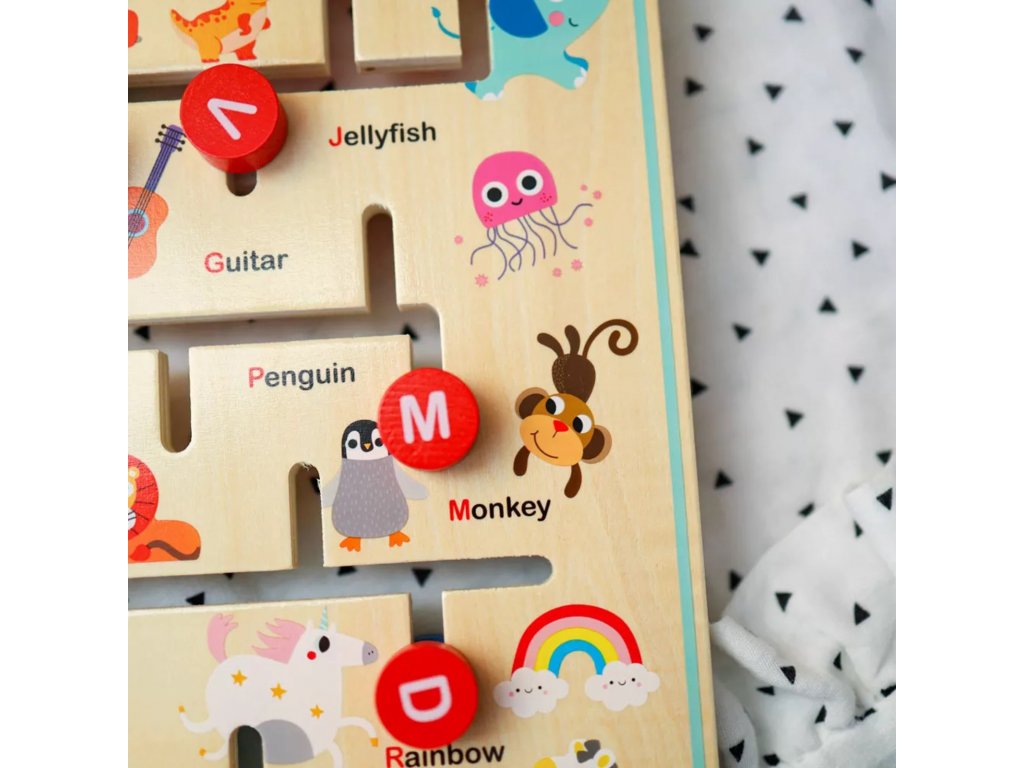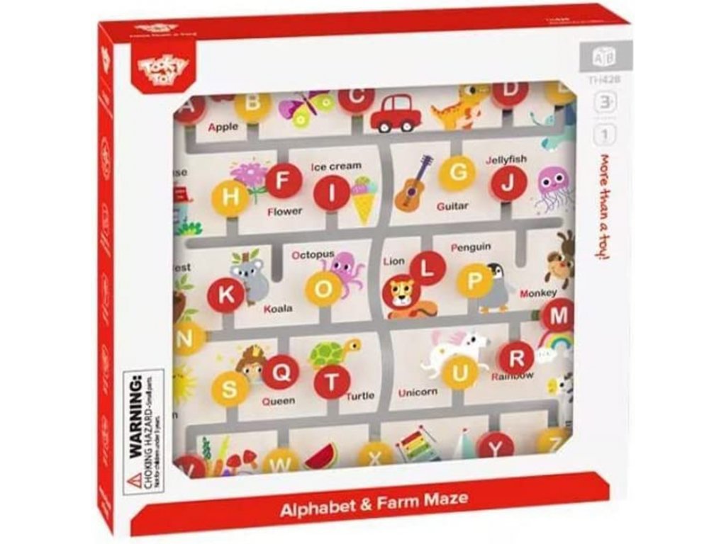 Interaktivní, oboustranná Montessori tabule Zvířátka a abeceda značky TOOKY TOY je inovativní a vzdělávací hračka. Na jedné straně desky je barevné farmářské puzzle, ve kterém děti musí třídit a přiřazovat zvířátka do vhodných kotců a stájí. Druhá strana nabízí poutavou hru s abecedou, při které se děti naučí řadit písmena od A do Z a anglicky. Hračka podporuje rozvoj dovedností řešit problémy, poznávat tvary, barvy a poznávat písmena.