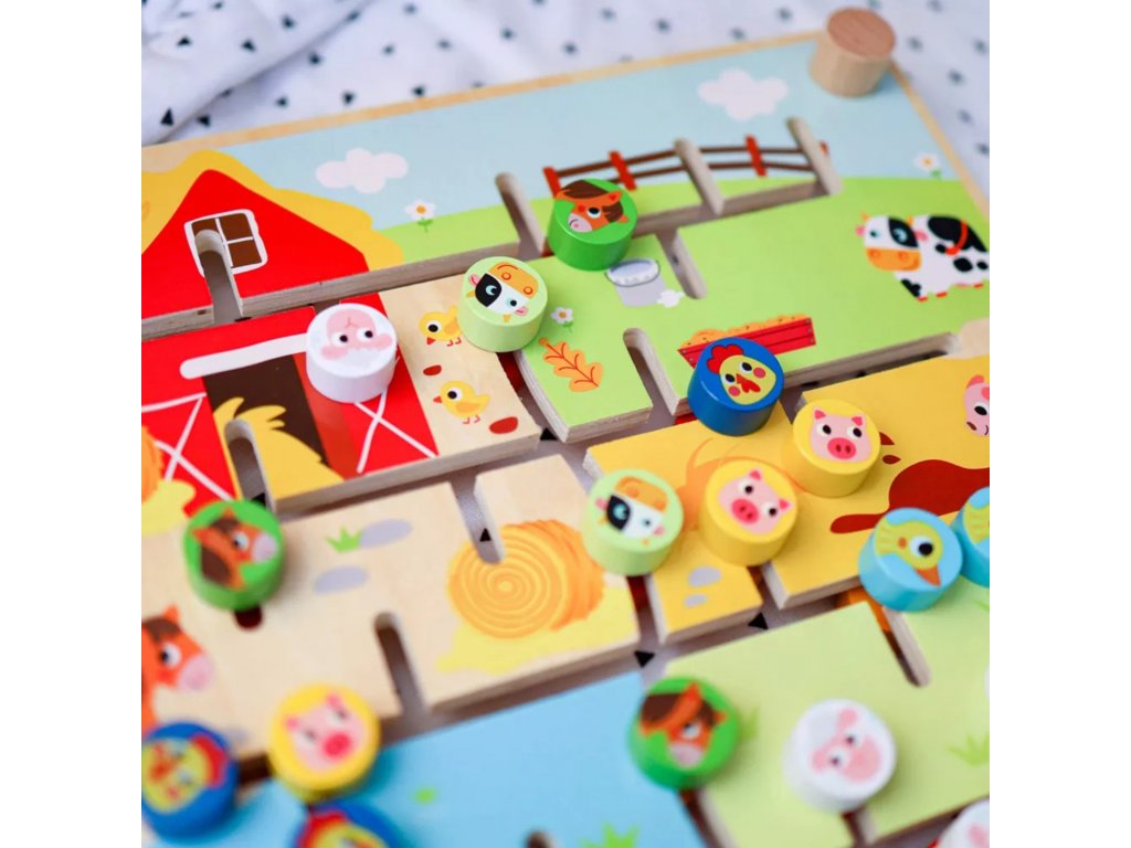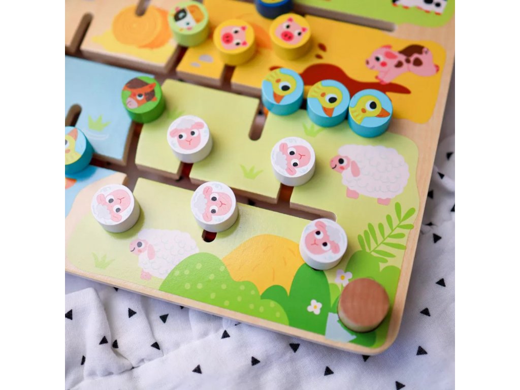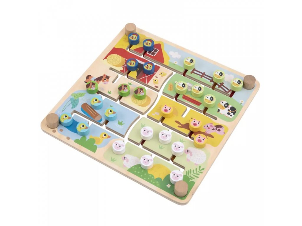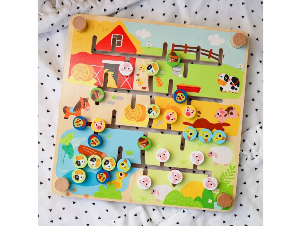 Interaktivní, oboustranná Montessori tabule Zvířátka a abeceda značky TOOKY TOY je inovativní a vzdělávací hračka. Na jedné straně desky je barevné farmářské puzzle, ve kterém děti musí třídit a přiřazovat zvířátka do vhodných kotců a stájí. Druhá strana nabízí poutavou hru s abecedou, při které se děti naučí řadit písmena od A do Z a anglicky. Hračka podporuje rozvoj dovedností řešit problémy, poznávat tvary, barvy a poznávat písmena.