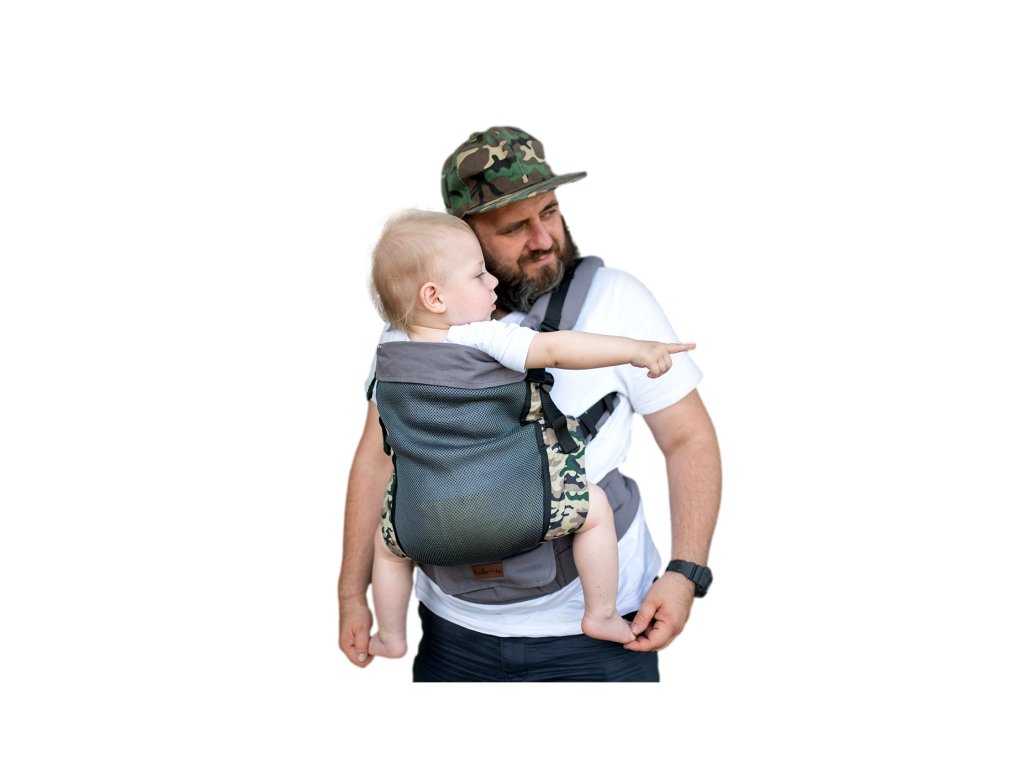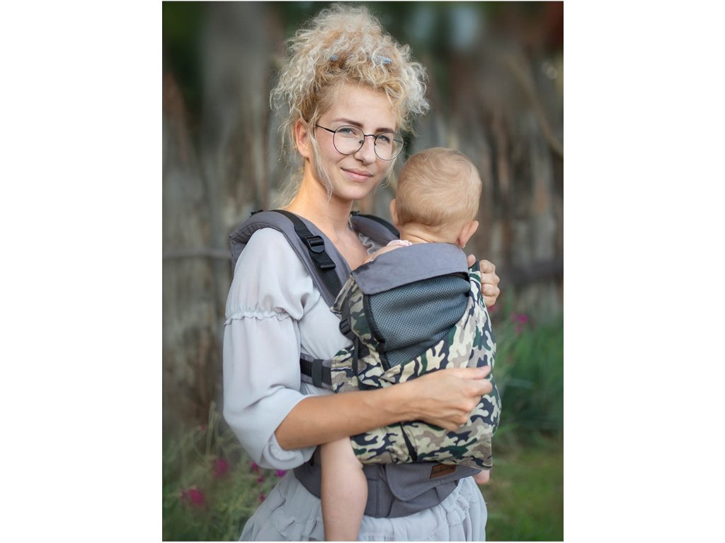 - dvě možnosti zapínání - pro malá miminka (pro větší zaoblení zádíček do tvaru C a dostatečně zastrčenou pánev) a větší děti (pro menší zaoblení a větší pohodlí)