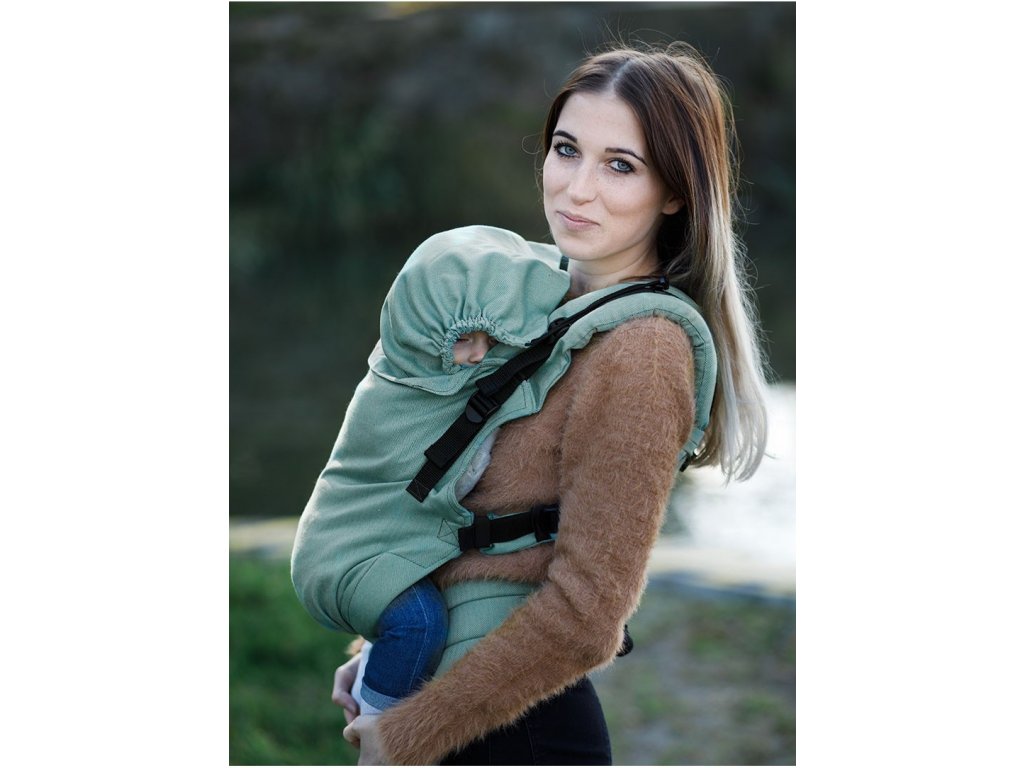 Možnosti nošení: vpředu na hrudi (s hlavičkou směřujícím k těle nositele), vzadu na zádech