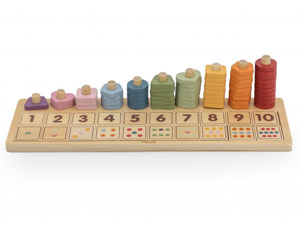 Dřevěná Montessori deska s roztomilou hlavičkou medvídka naučí vaše dítě počty. Hračka také pomáhá rozvíjet logické myšlení. Výrobek je ze dřeva.
