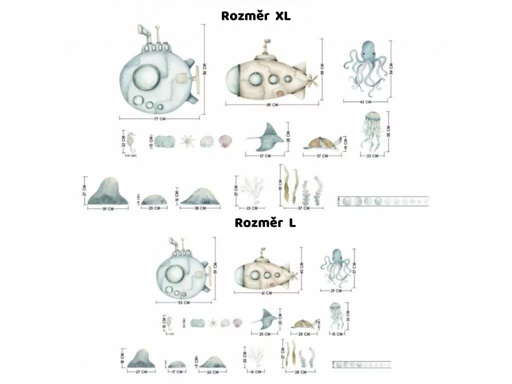Čas na podvodní dobrodružství! Sada samolepek Ponorky obsahuje 29 ks samolepek v decentních tlumených barvách.