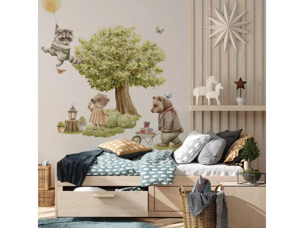 Sada tištěných samolepek na zeď vyřezaných z matné fólie s motivy zvířátek a zeleně. Sada obsahuje 18 prvků.
