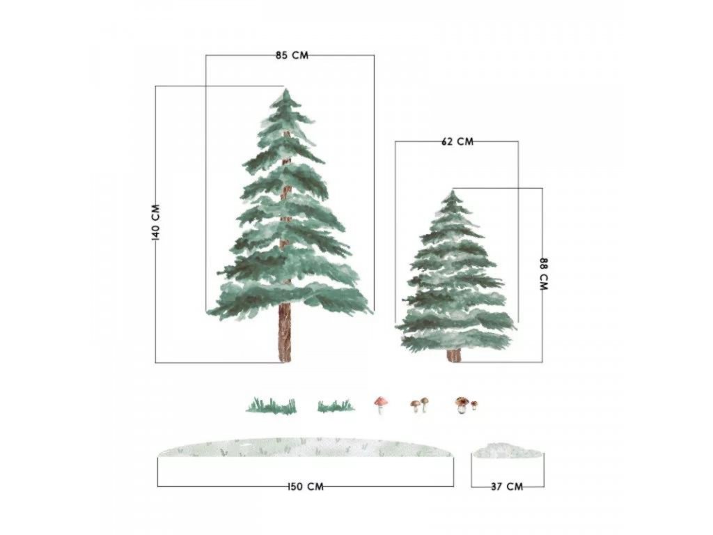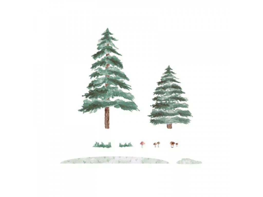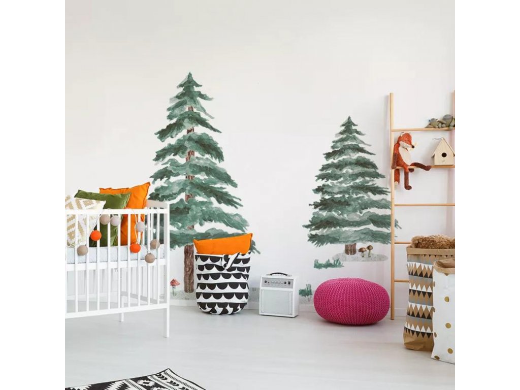 Smrky jsou půvabným akcentem v dětském pokoji, vhodném pro děti všech věkových kategorií. Nemohou chybět v pokojíčku malého lesníka, který miluje lesní turistiku a houbaření! Pokud máte rádi přírodu a chcete si zajímavě ozdobit zeď, je to pro vás ideální řešení!
