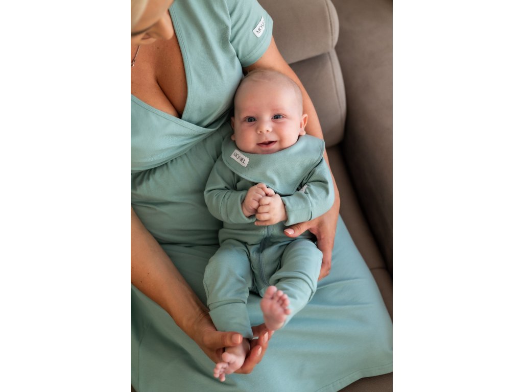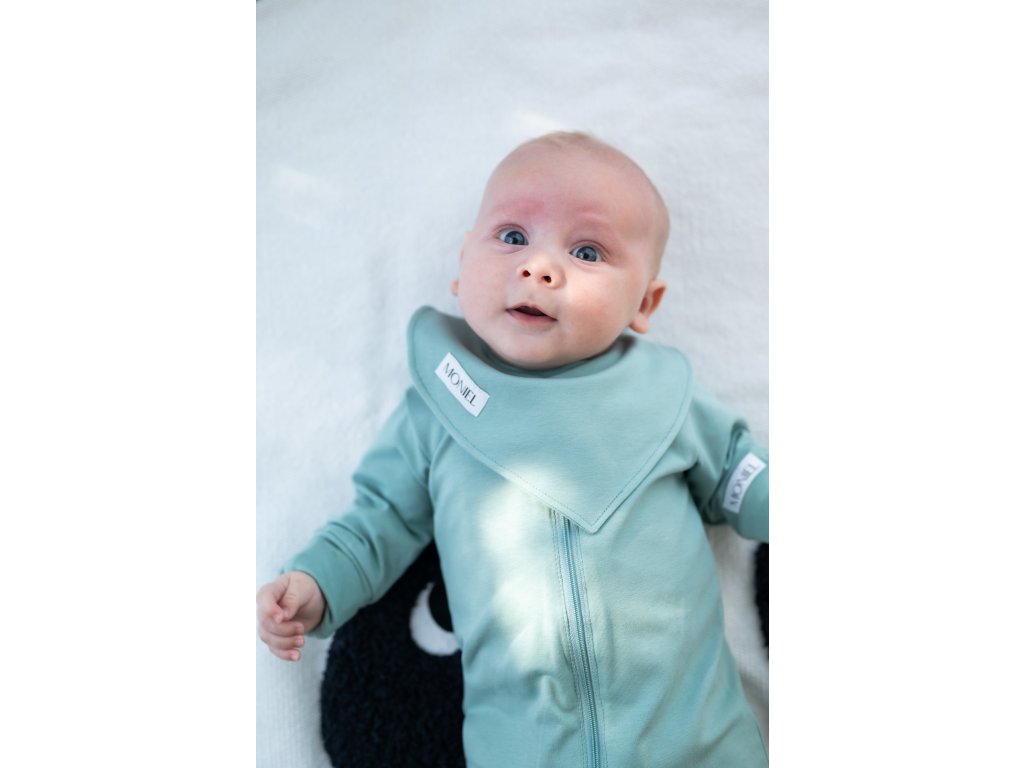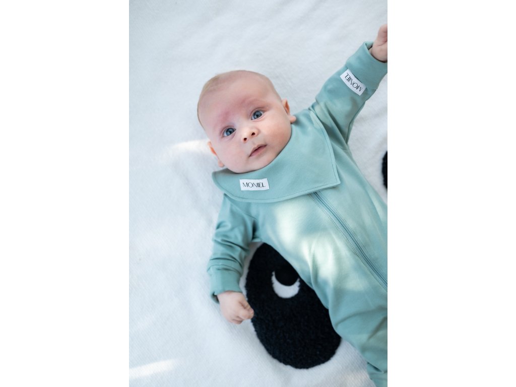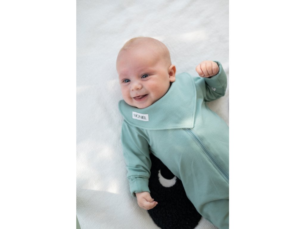 Rostoucí slintáček pro miminko Moniel Pastel mintová je stvořený pro první měsíce a roky vašeho děťátka. Miminko první dny po narození může ublinkávat zbytky nenatráveného mléka a nadměrně slintat během prořezávání zoubků. Přesně proto je tady slintáček Moniel. Ochrání dětské oblečení a v případě zašpinění stačí vyměnit slintáček, bez nutnosti měnit celé oblečení dítěte.