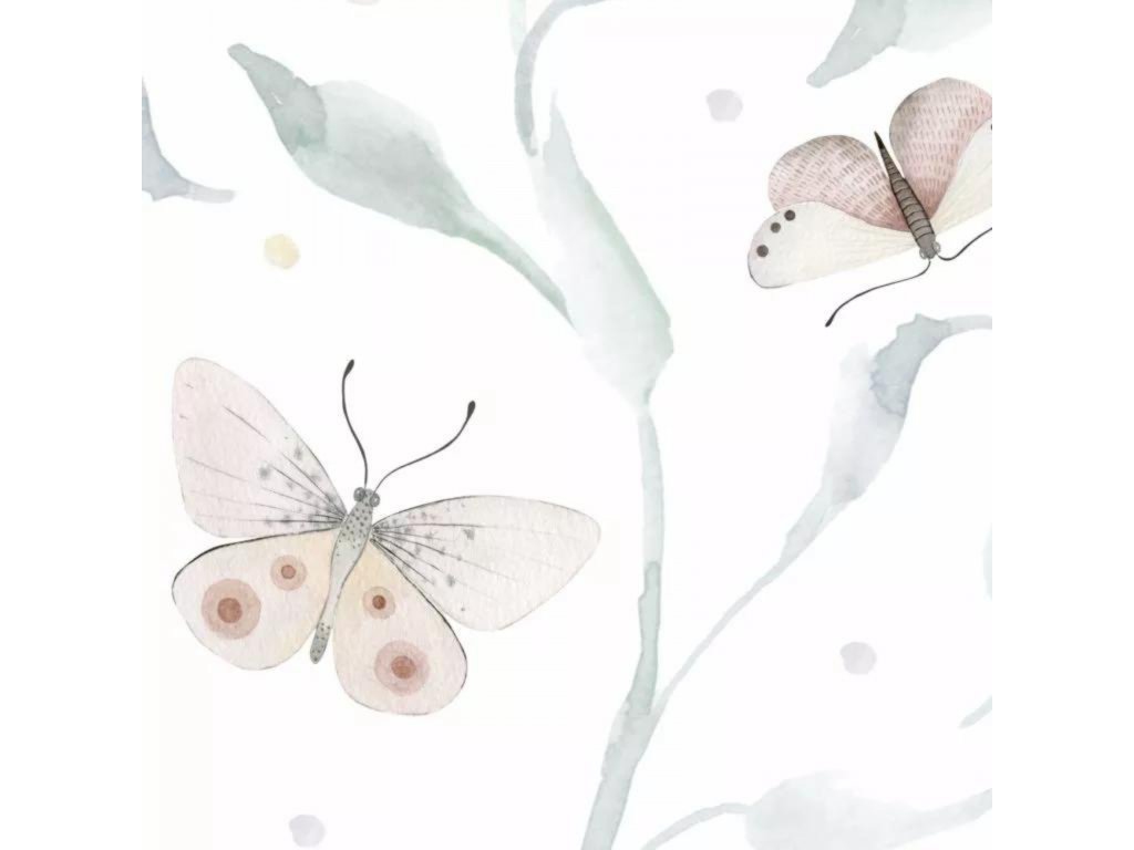 Tapeta s motýlky dokonale rozzáří nejen dětský pokojíček! Motiv tapety je malovaný velmi decentně a skvěle zapadne do pokojíčků malých holčiček, stejně jako mladých slečen.