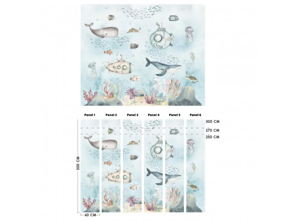 Vinylová tapeta do dětského pokoje na vliesovém podkladu s podvodním motivem.