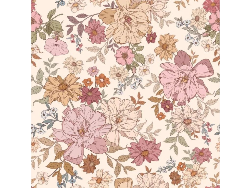 Objevte kouzlo velkých, ale přesto decentních květů. Odstíny hořčicové, fuchsiové a cihlové na béžovo-žlutém podkladu vytvářejí univerzální design, který bude vypadat fantasticky v pokojíčku pro miminko, v království čtyřleté holčičky, v pokoji teenagera nebo… v ložnici rodičů, pokud váš novorozenec spí s vámi.