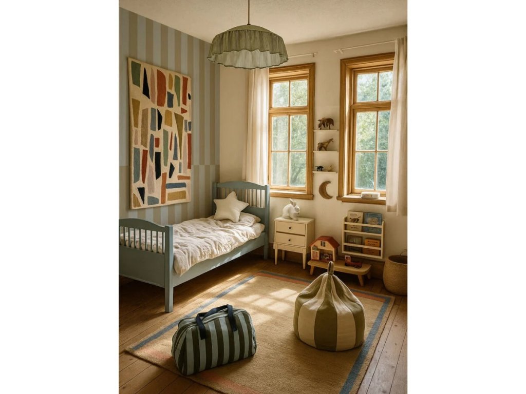 Originální barevné kombinace jsou specialitou Dekornik! V tomto případě jde o jemnou, tlumenou modrou v kombinaci s netradiční zelenou, která má hřejivý a rovněž tlumený podtón. Tyto barvy vypadají fantasticky v doprovodu přírodního dřeva nebo lehkých nebes nad postýlkou – skvěle zapadnou do minimalistických i odvážnějších interiérů.