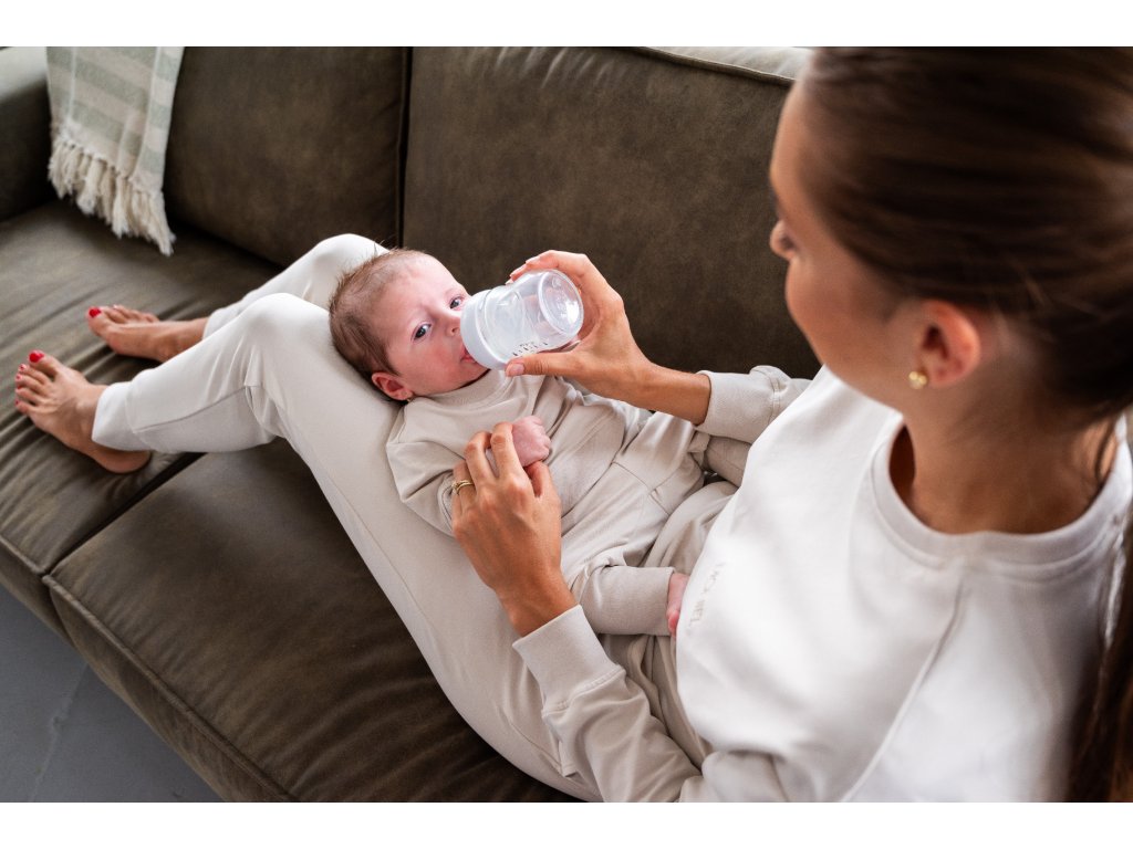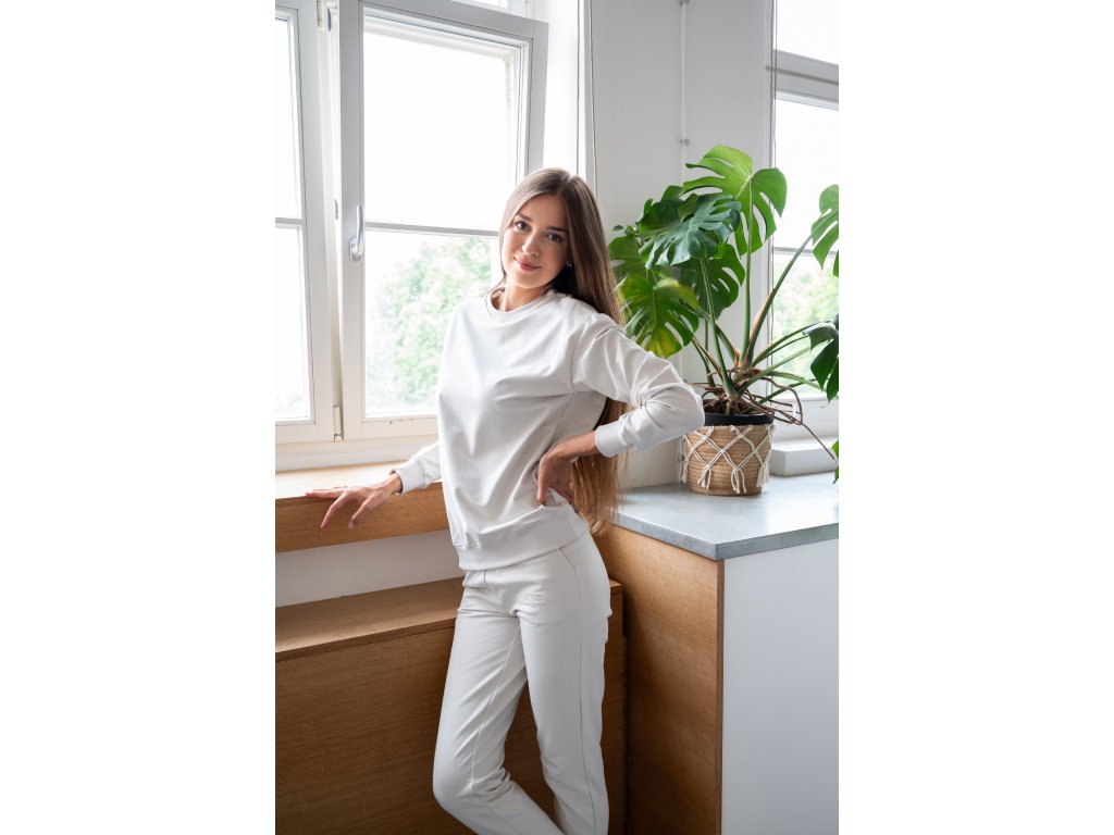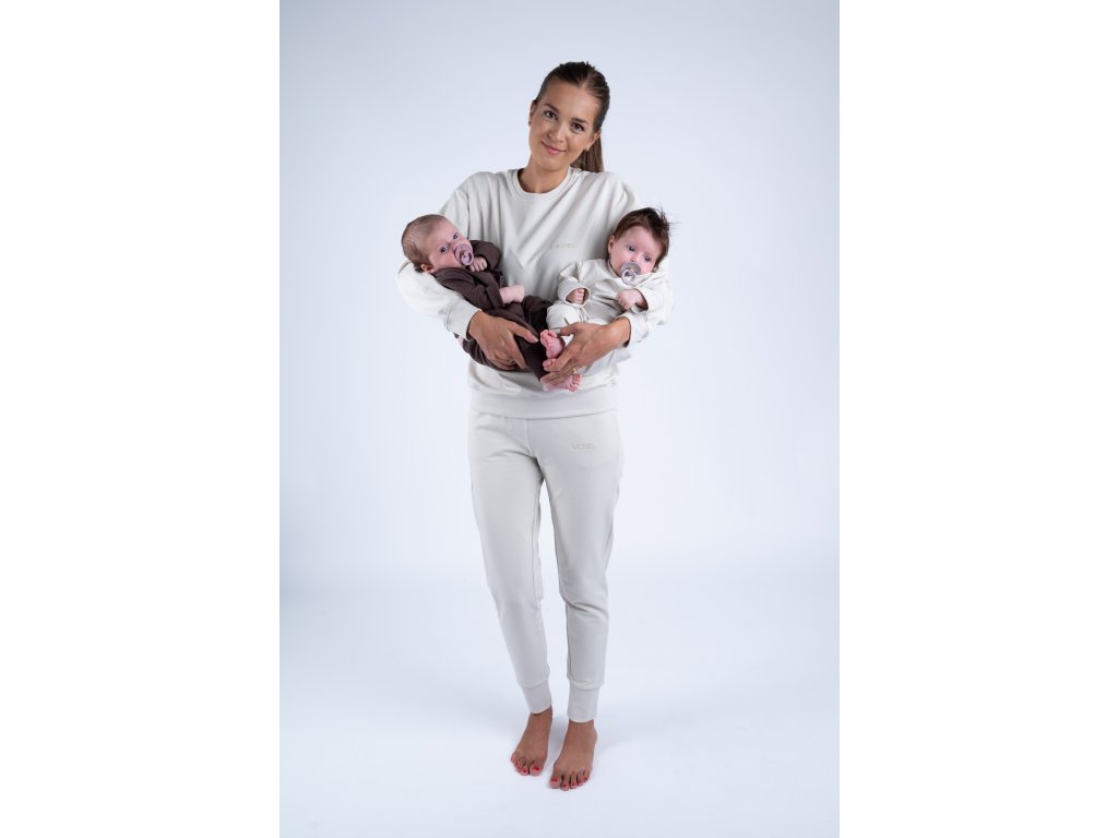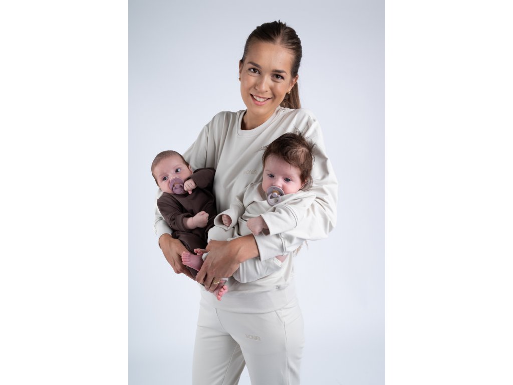 Souprava ušitá z velmi elastické látky, která je extrémně hebká a příjemná na dotek. Látku na Moniel teplákovku jsme si nechali vyrobit na míru tak, aby byla heboučká, ale zároveň dlouho vydržela a netvořila žmolky. Vrchní vrstva látky je tkaná speciálním způsobem tak, aby vytvořila sametově jemný povrch, který je zároveň maximálně odolný. Můžete si tak být jistá, že i v případě častého praní zůstane souprava stále krásná. Tu hebkost ale musíte zažít, nelze ji popsat slovy.