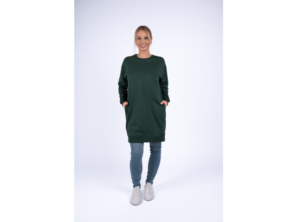 Kojící mikina Moniel Basic má dlouhý střih a končí v oblasti stehen či kolen, v závislosti na vaší výšce. Mikinu můžete nosit již během těhotenství, protože je dostatečně prostorná na zakrytí těhotenského bříška. Dlouhou mikinu můžete nosit také jako pohodlné a stylové jednoduché mikinové šaty.
