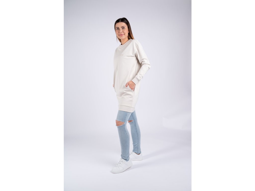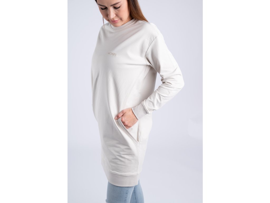 Kojící mikina Moniel Basic má dlouhý střih a končí v oblasti stehen či kolen, v závislosti na vaší výšce. Mikinu můžete nosit již během těhotenství, protože je dostatečně prostorná na zakrytí těhotenského bříška. Dlouhou mikinu můžete nosit také jako pohodlné a stylové jednoduché mikinové šaty.