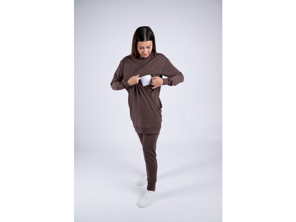Dámská kojící tepláková souprava Moniel Basic Chocolate se stane oblíbeným kouskem vašeho šatníku.