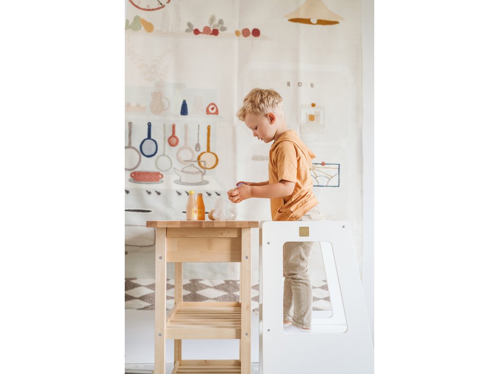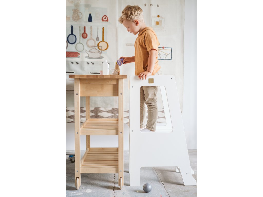 Učící věž je skvělá pomůcka pro děti od 1 roku do 8 let. Díky této vzdušné a funkční učící věži děti se děti mohou zapojit do domácích prací, aby získaly spoustu nových dovedností. Učící věž má perfektní design, je krásná, bezpečná a prostorná. Je to úžasný pomocník, který v domácnosti nezabírá moc místa a Vaše děti jej mohou využít pro samostatnou činnost nebo se zapojit do práce s Vámi. Je vyrobena dle principů učení Montessori.