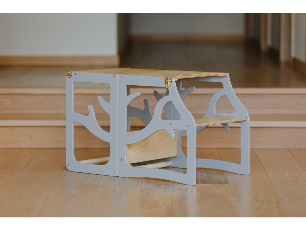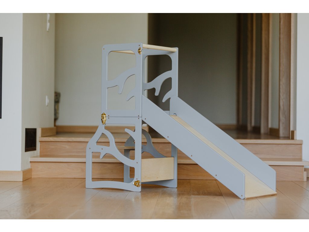 Zcela unikátní multifunkční učící věž 3v1 Tree Šedá/Přírodní je nejen elegantní a stylová, ale především úžasně praktická. Jednoduchým pohybem můžete věž přestavit na stoleček se židlí nebo skluzavku. Ušetříte spoustu místa v bytě a děti si užijí nekončící zábavu.